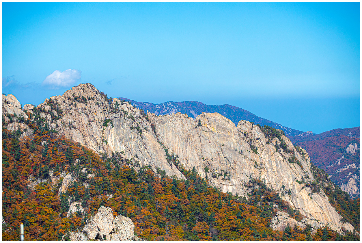 ▼ 한계령휴게소에서 조금 오르자 건너편 능선이 보이면서 도심에서는 생각지도 못했던 단풍이 시선을 사로잡는다.