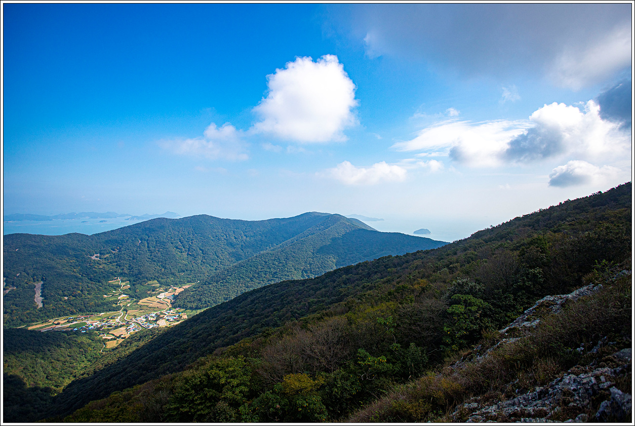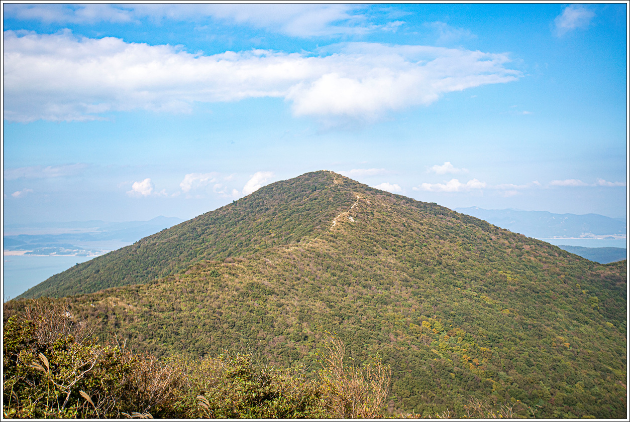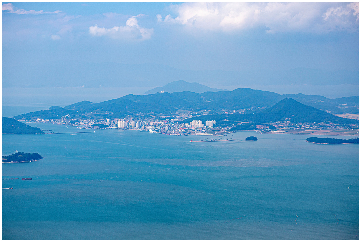 ▽ 멀리 고흥의 마복산(535m)과 능선상의 기상관측소가 하얀 점으로 보인다.