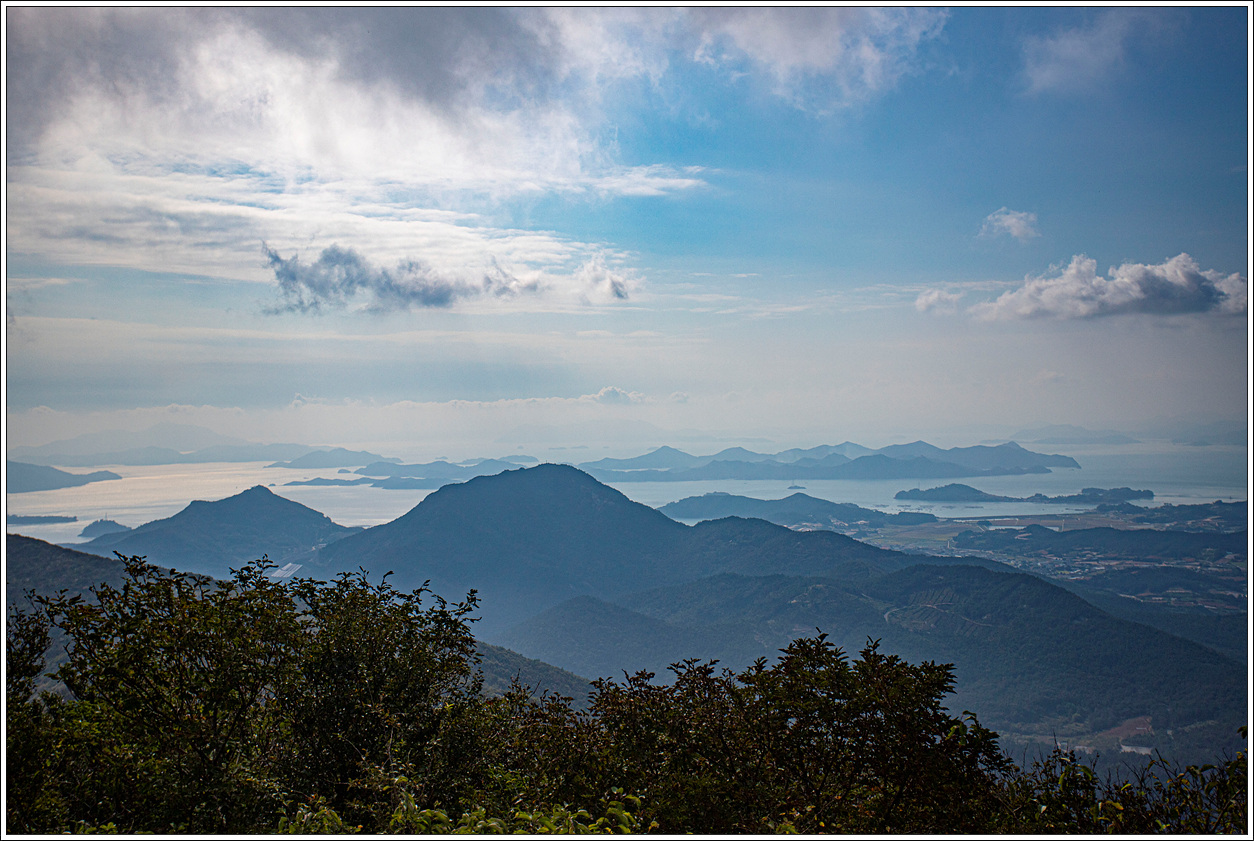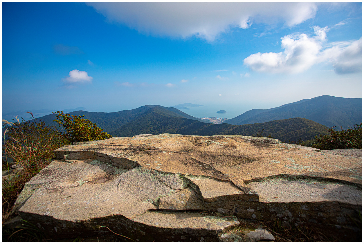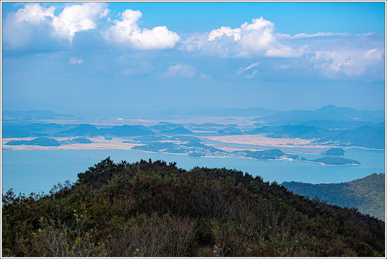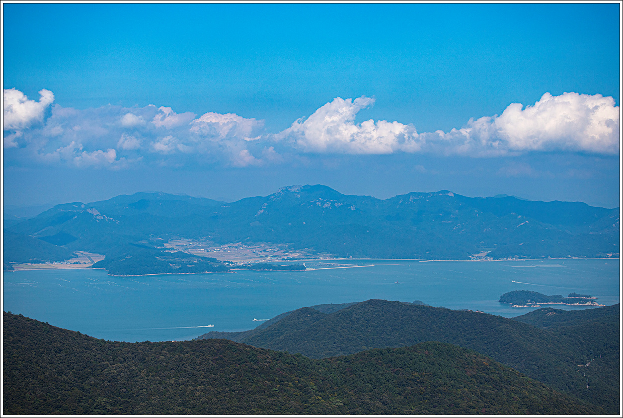 ▽ 멀리 고흥의 마복산(535m)과 능선상의 기상관측소가 하얀 점으로 보인다.