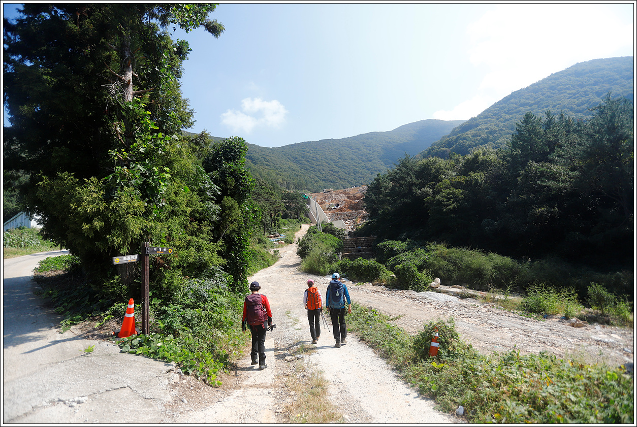 ▽ 오늘 오를 산인 적대봉을 바라보며 마을길에 접어든다. 600여 미터를 지나야 본격적인 산행이 시작된다.