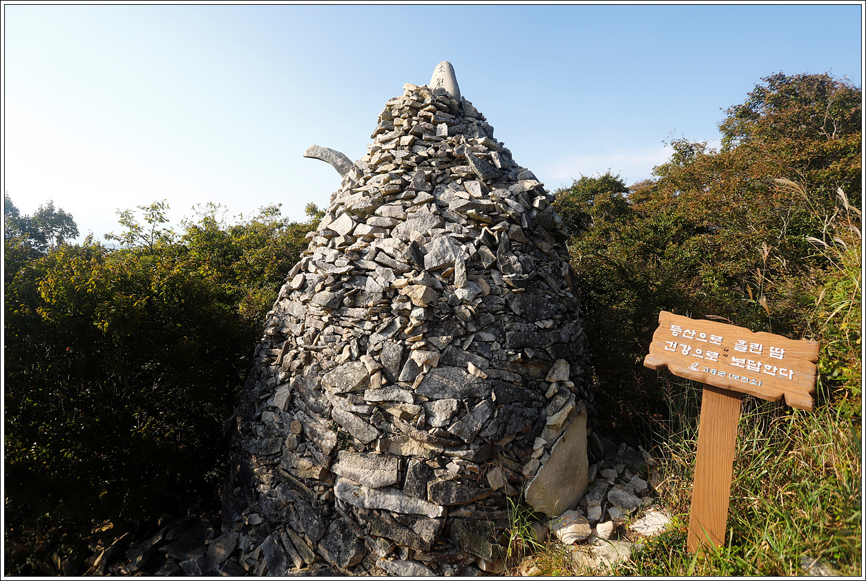 ▽ 봉수대에 있는 것이 정상석인 줄 알았는데 그 아래쪽에 이와 같이 꽤 길다란 정상석이 지자체가 아닌 어느 회원들이 세웠다. 아마도 우리나라에서 다섯 손가락에 들어갈 정도로 큰 정상석이 아닐까 생각해 본다.
