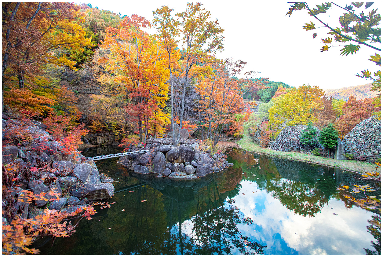 ▽ 계곡마다 담수된 물에는 단풍잎으로 가득, 가을정취가 절정에 이른다.