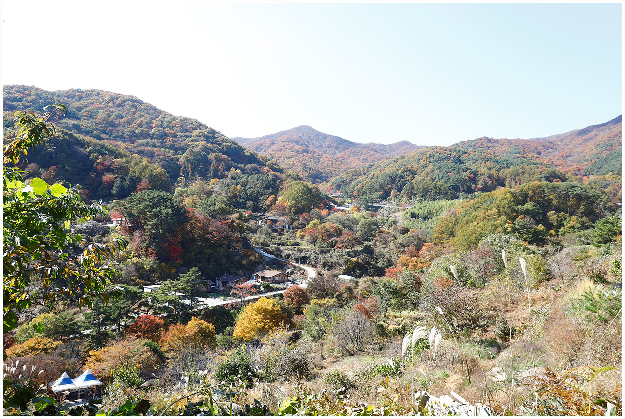 ▽ 계곡으로 접어드니 온통 하늘이 단풍으로 물들어 황홀하다.