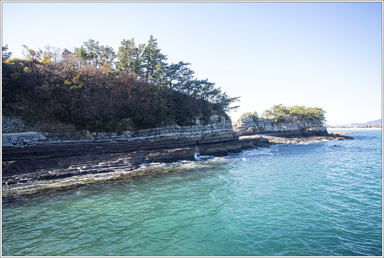 ▽ 추도 서쪽방향 끝자락을 보며 한결같이 퇴적층을 이룬 이 지점을 돌아가 보기로 한다.