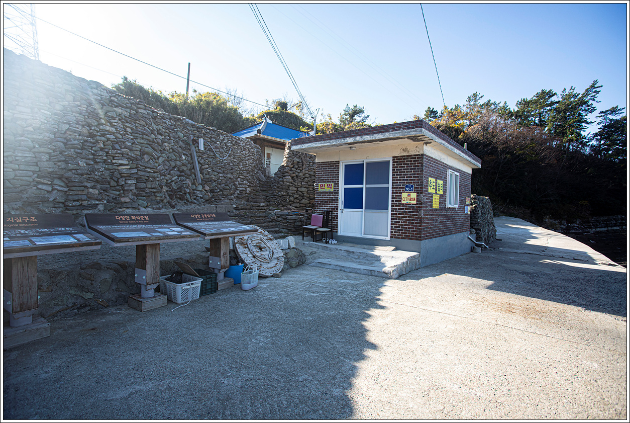 ▽ 마을은 마치 성을 쌓은 듯 4m이상 높이의 돌담으로 지붕만 살짝 보일 정도이다. 사도·추도는 국가지정문화재 보호구역으로 이 지역의 보존에 영향을 미칠 우려가 있는 행위나 동물, 식물, 광물을 포획, 채취하여 구역 밖으로 반출하지 못하도록 되어 있어 그대로 보존될 수밖에 없다.