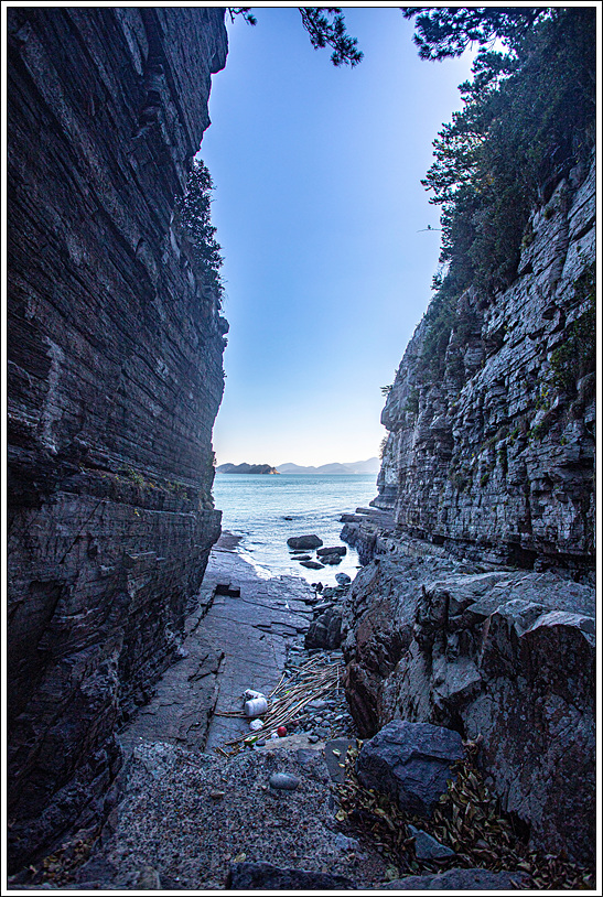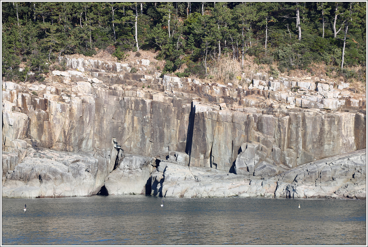 ▽ 아침에 걸었던 낭도의 해안절벽을 다시 한번 살펴보기로 하는데 신선대의 기암들의 풍경이 눈에 들어오기 시작한다.