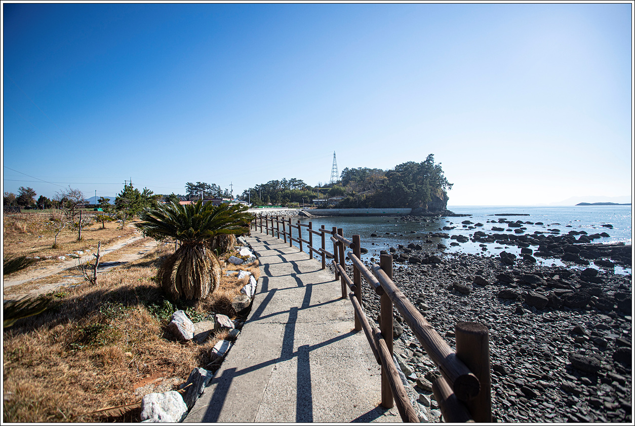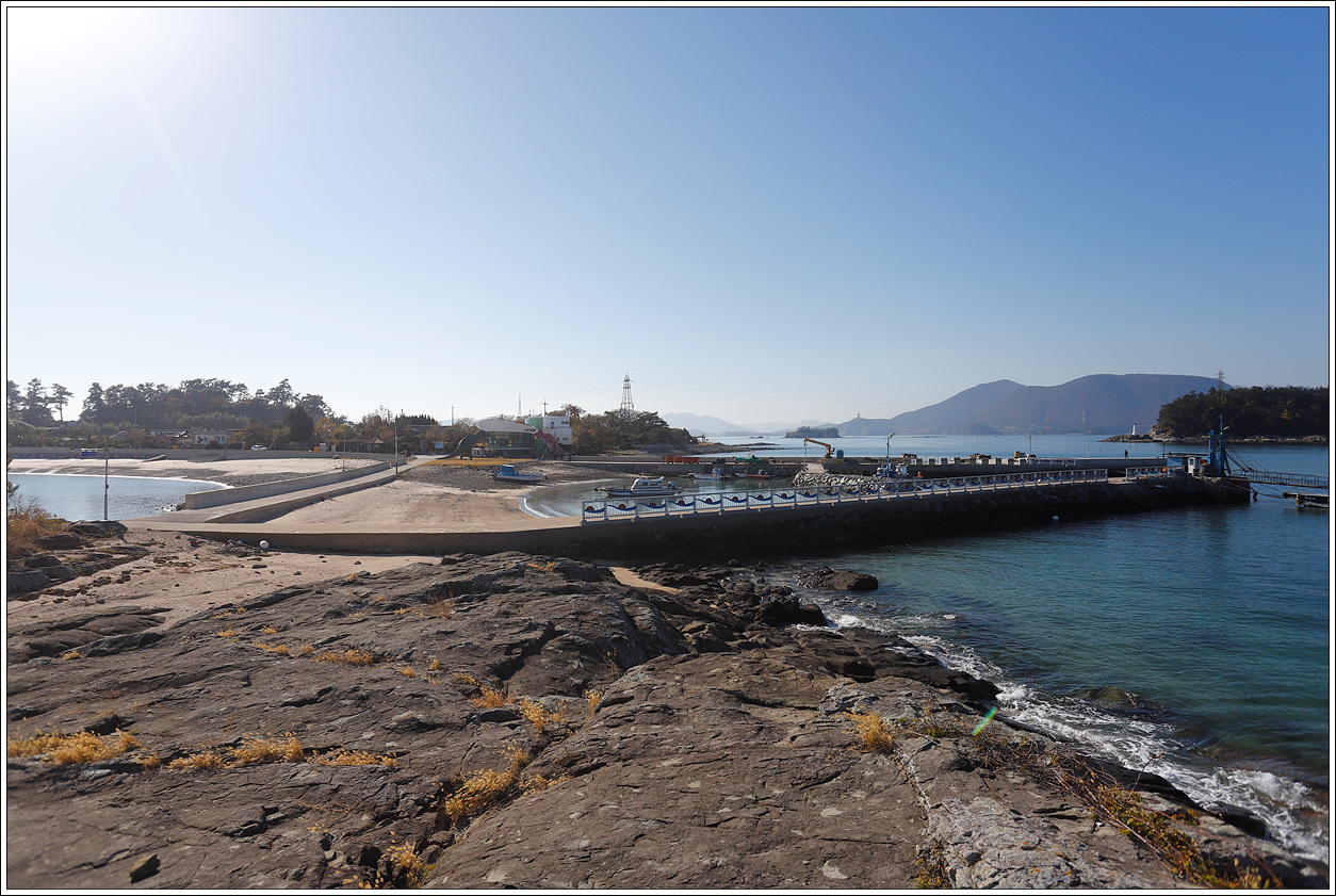 ▽ 다시 낭도에 도착하여 선착장에서 마을을 지나 반대편인 이곳에 주차되어 있는 버스에 오른다. 낭도리의 아름다운 마을 풍경을 끝으로 무박 일정의 산행 및 트레킹을 마친다. 아는 분들에게 기회가 된다면 물때를 맞춰 꼭 한번 가볼 수 있도록 추천을 하고 싶다.