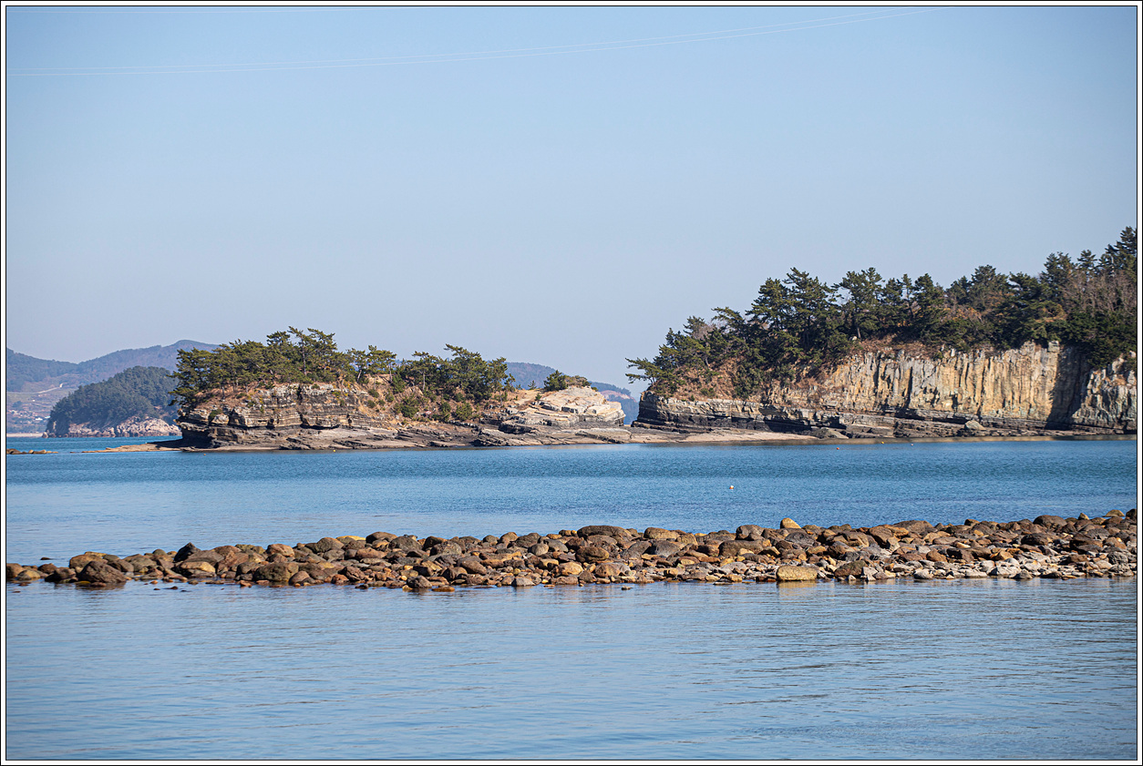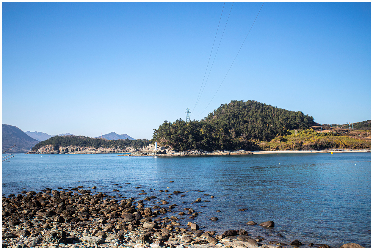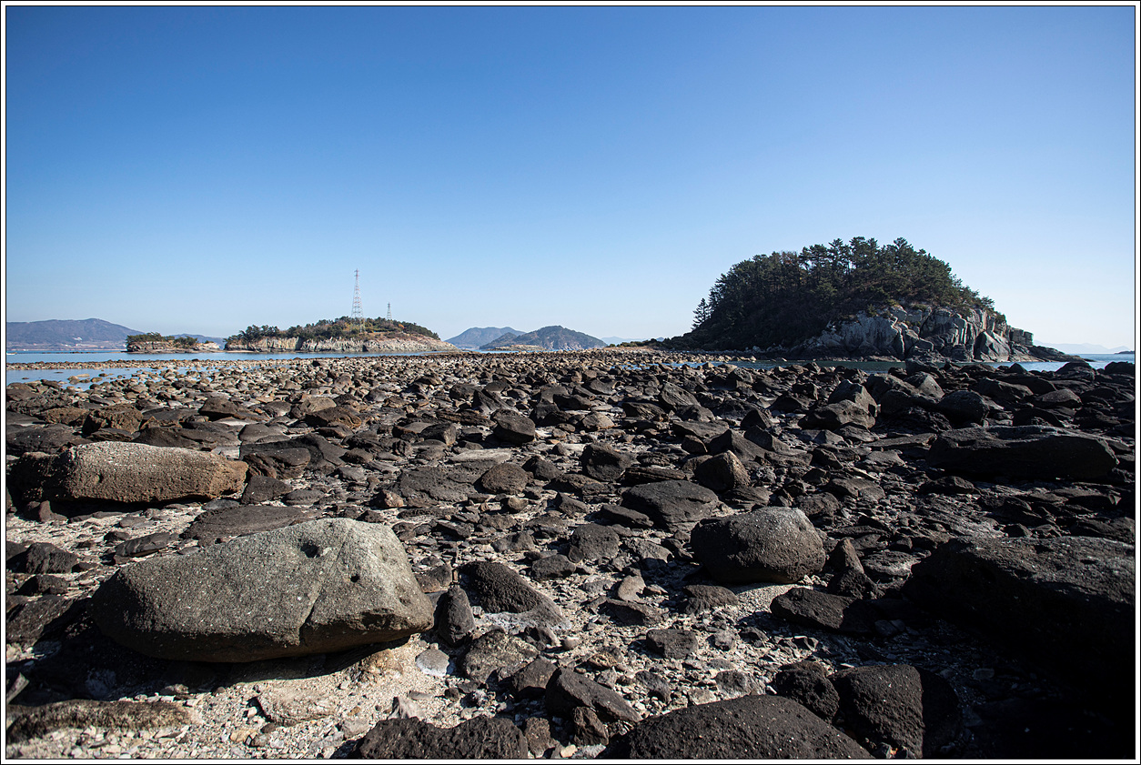▽ 이곳에서 오른편의 장사도를 보면 육지처럼 보여서 건널 수 있을 것만 같은데 수많은 몽돌로 인해 착각일 뿐이다. 간만의 차가 큰 썰물에는 충분히 건너볼 수도 있겠다.
