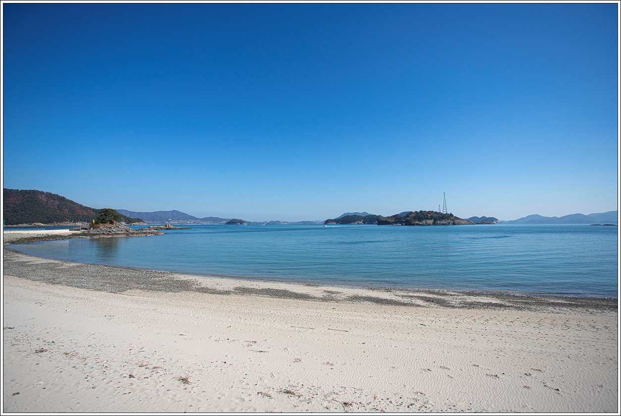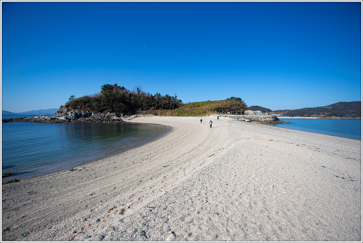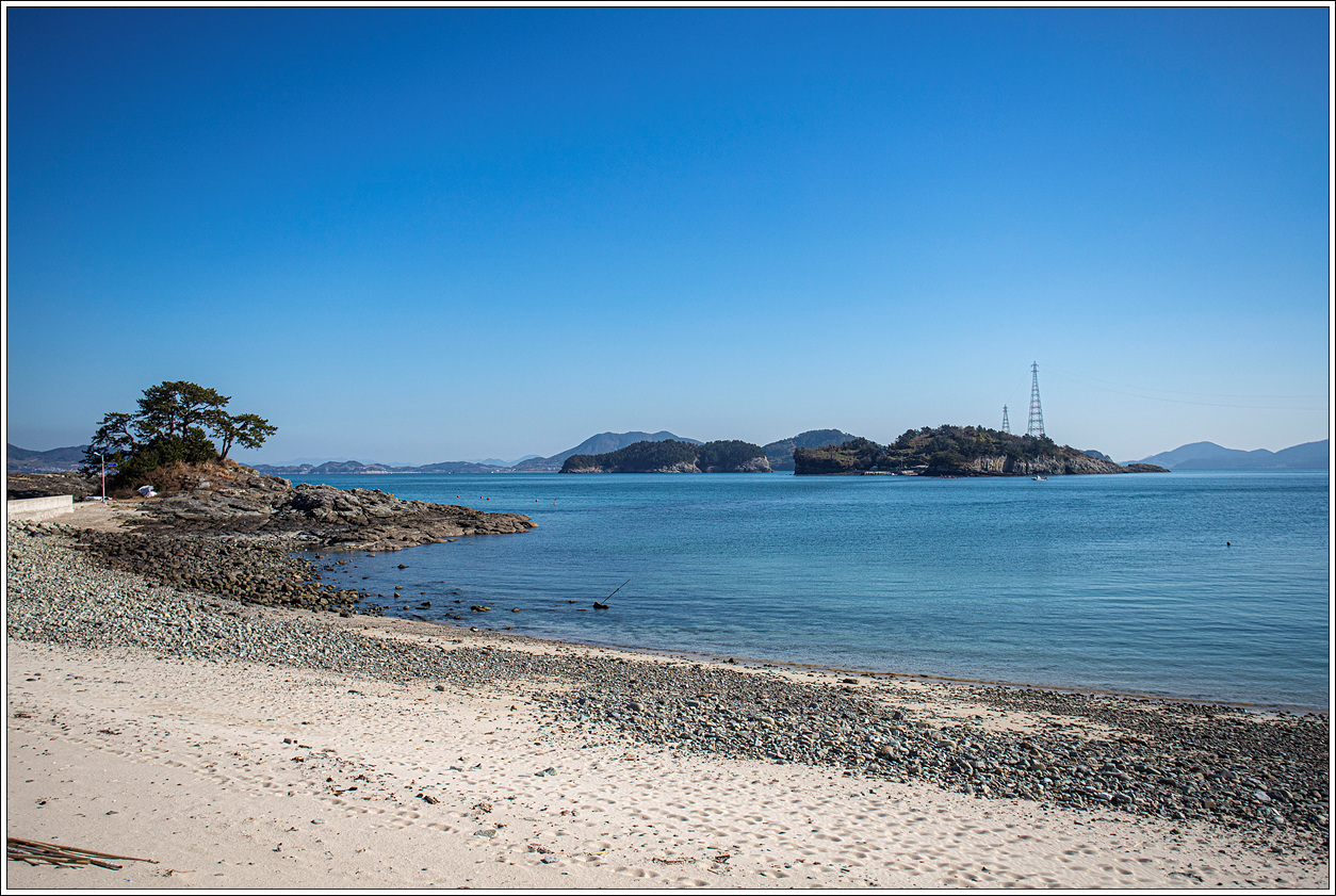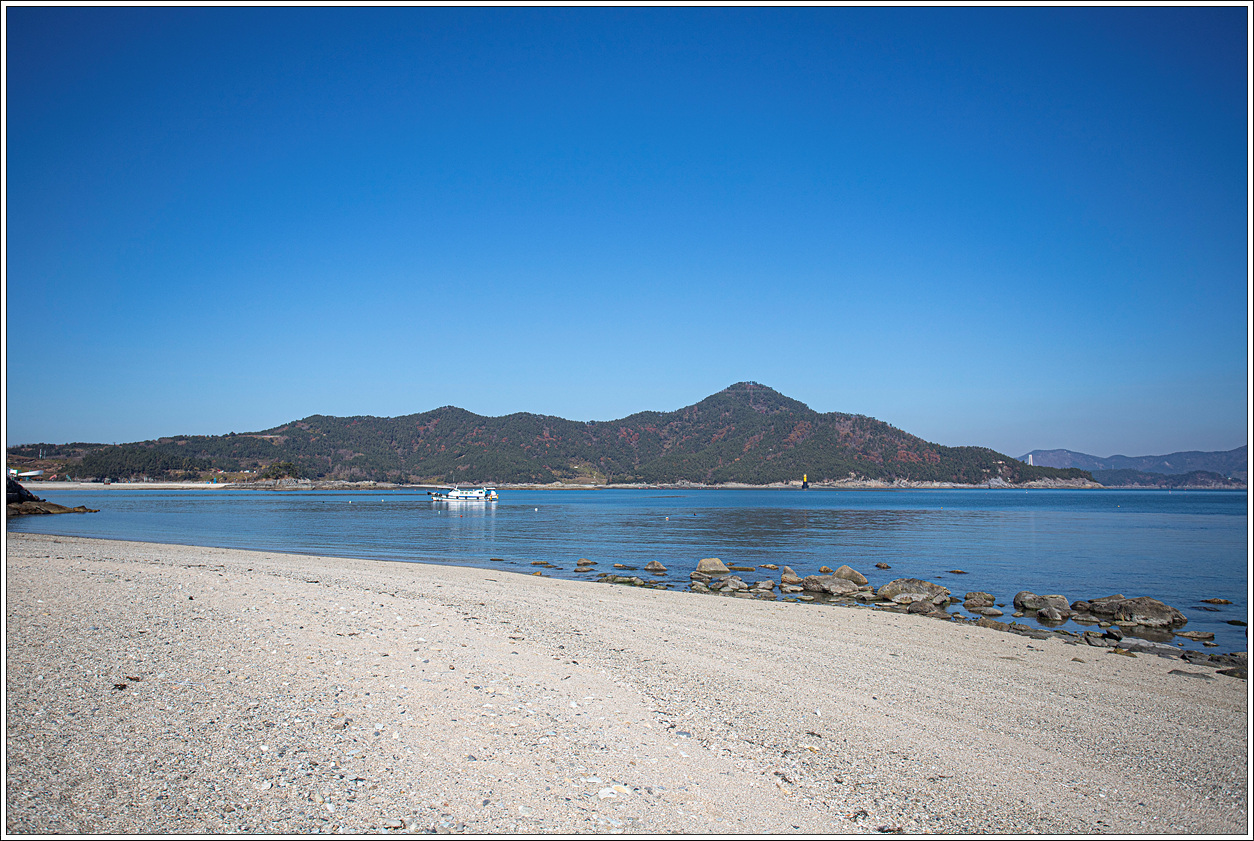 ▽ 이곳에서 오른편의 장사도를 보면 육지처럼 보여서 건널 수 있을 것만 같은데 수많은 몽돌로 인해 착각일 뿐이다. 간만의 차가 큰 썰물에는 충분히 건너볼 수도 있겠다.