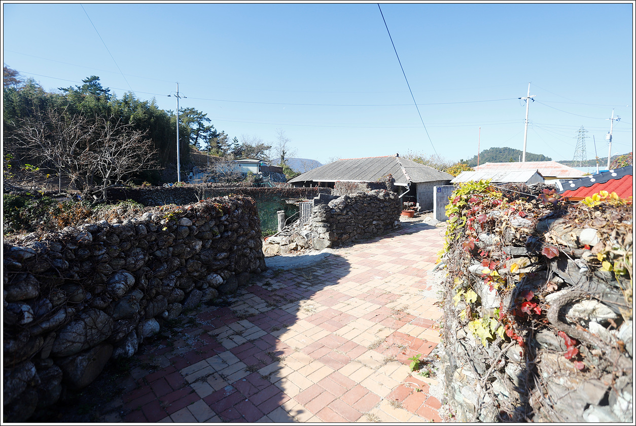 ▽ 마을 안쪽으로 들어가니 역시 돌담이 인상적이다. 제주도의 돌담은 누구나 아는 사실이고 특히 청산도의 돌담, 고흥 쑥섬의 돌담, 이곳의 돌담이 인상에 남는다. 어느 섬이나 방풍을 위해 쌓았겠지만 섬이라고 이렇듯 마을 전체가 돌담으로 형성되어 있는 것은 아니다.