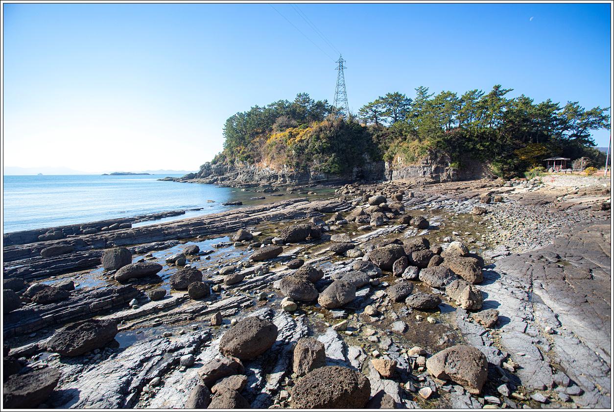 이곳은 추도의 납작한 돌과는 달리 돌들이 둥근형태를 띠고 있다. 모두 똑같이 퇴적층에서 떨어져 나온 암석들일텐데 왜 이곳의 돌들은 모양이 다른지 모르겠다. 모두 바닷물의 흐름에 따라 달라질 수도 있겠다는 생각이다.