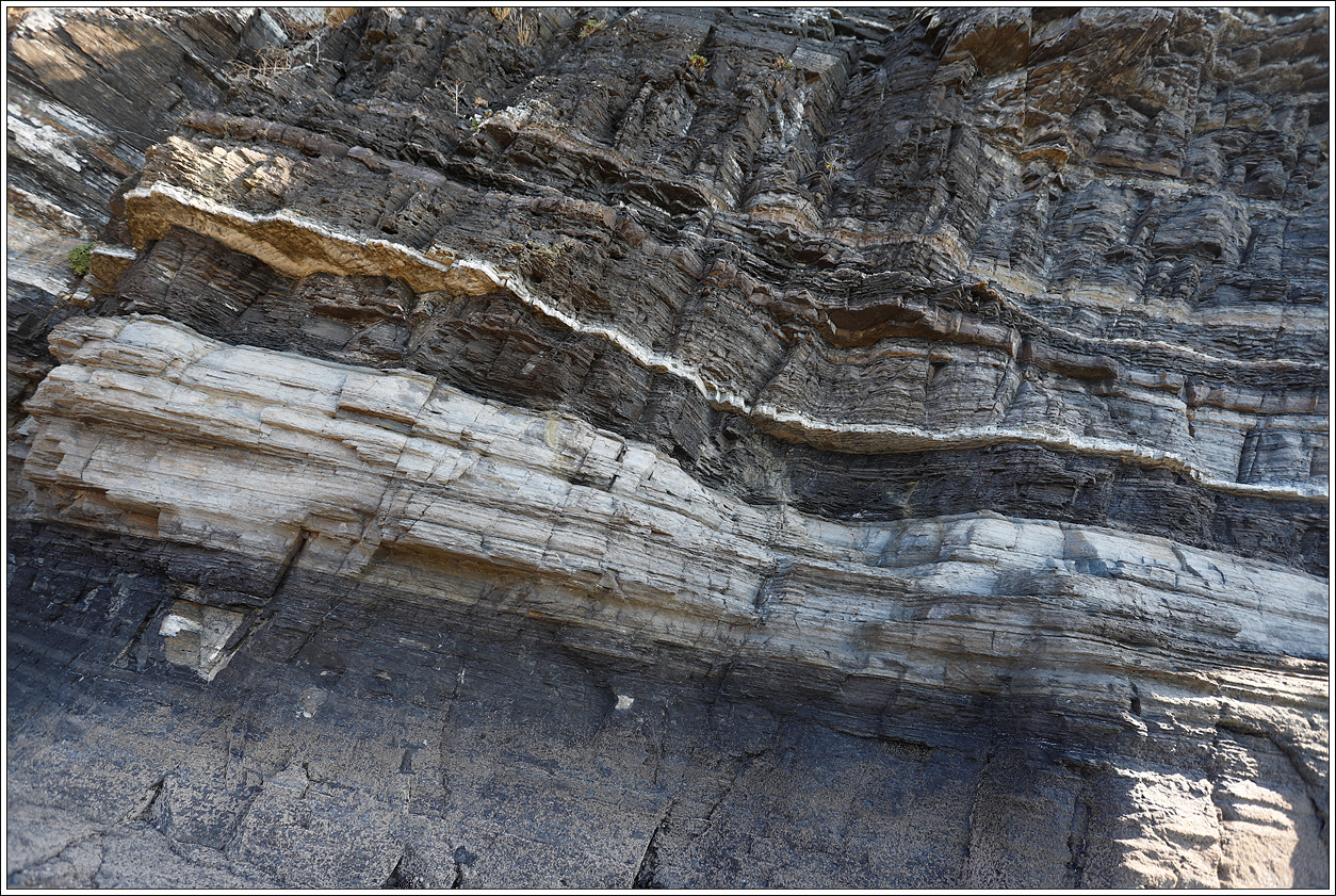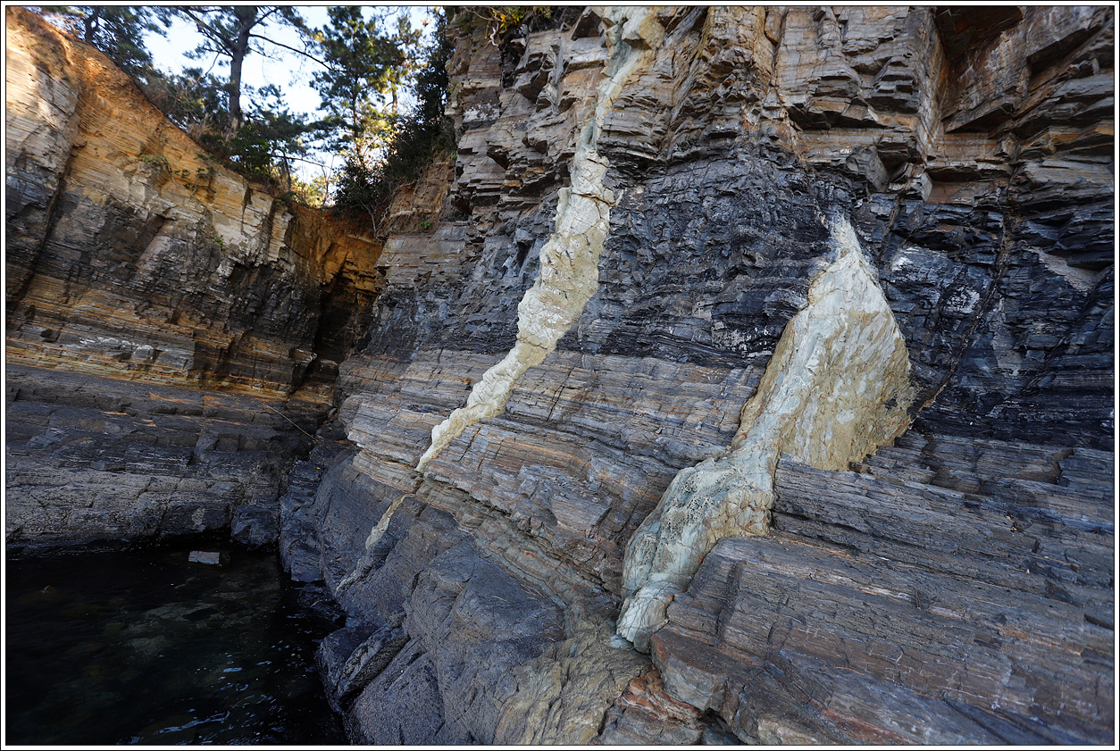 ▽ 퇴적암층 사이로 이와같이 흘러내린 암맥은 또 어떻게 설명되어야 할 것인지... 지질학자가 아니니 상상이 되질 않는다.