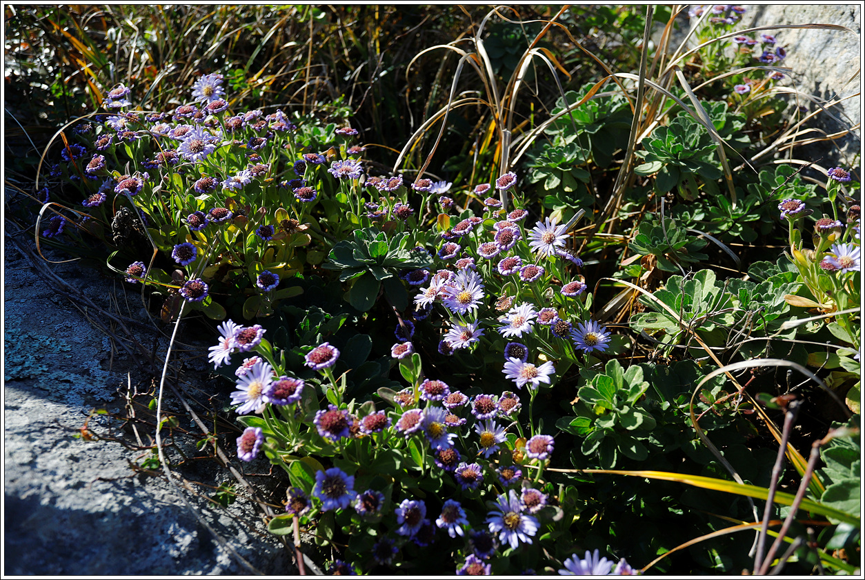 ▽ 아직도 피어있는 해국...낭도의 바위틈에서 봤는데 이곳은 풀숲에 숨어서 피었다.