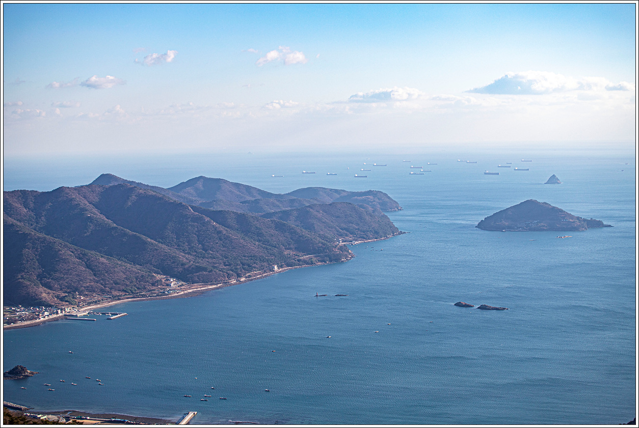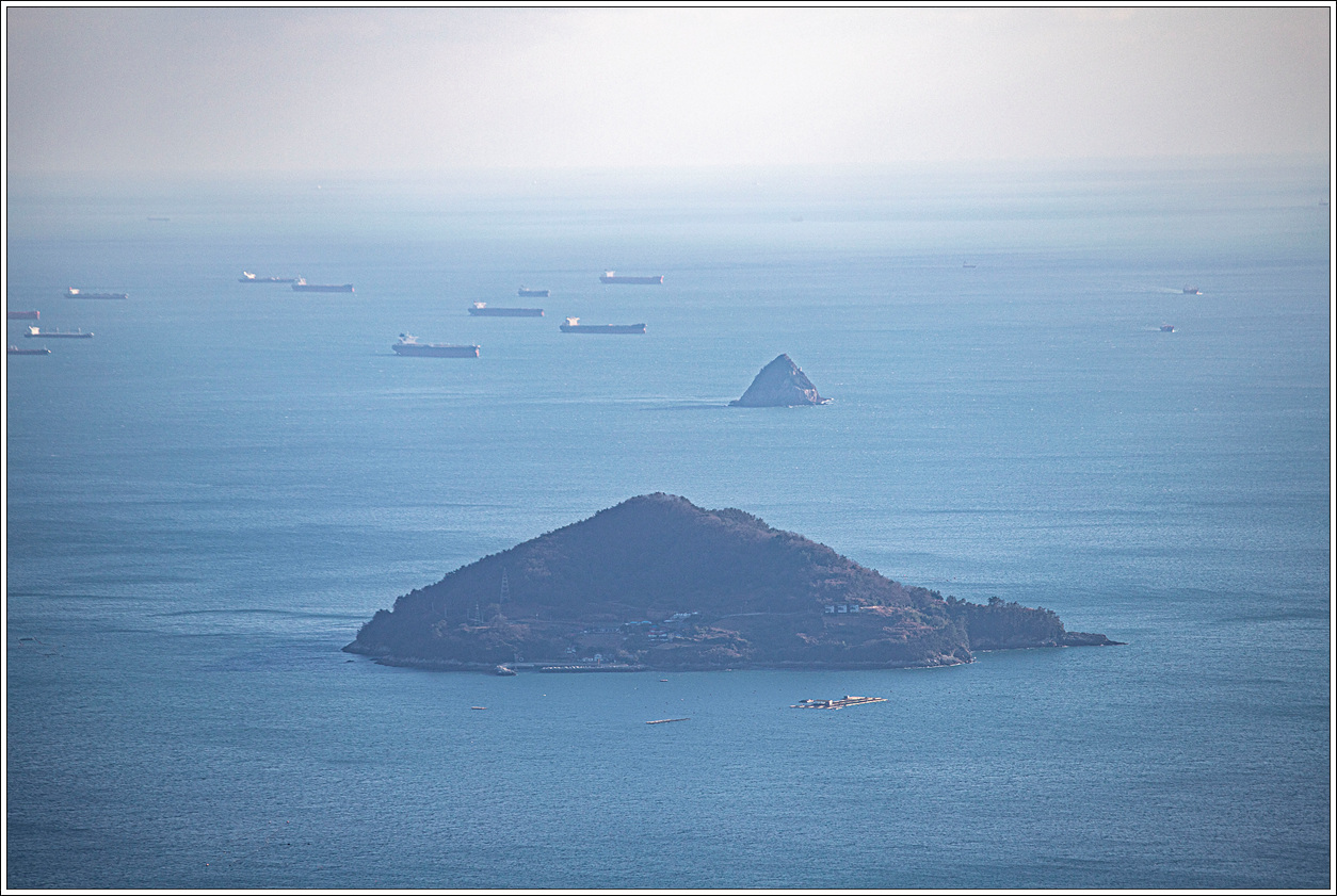▽ 여수앞바다의 무수한 대형 선박들이 정박해 있는 모습이 장관이다. 여수밤바다의 노래가 있듯이 여수의 밤바다가 이러한 불빛들로 인해 아름다울 것이란 생각이다. 그에 못지 않게 올망졸망한 산군들이 어느 도시와 달리 이색적인 느낌이다.