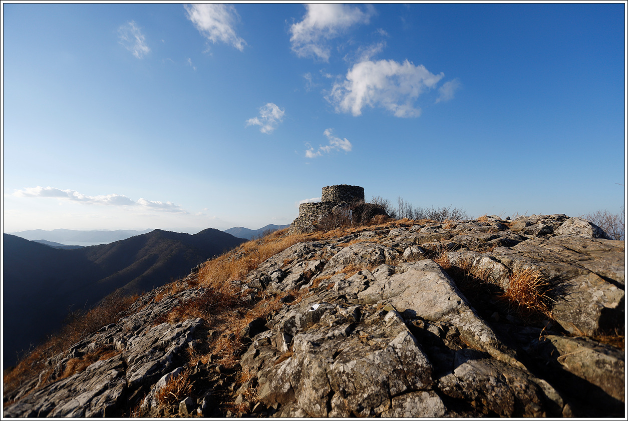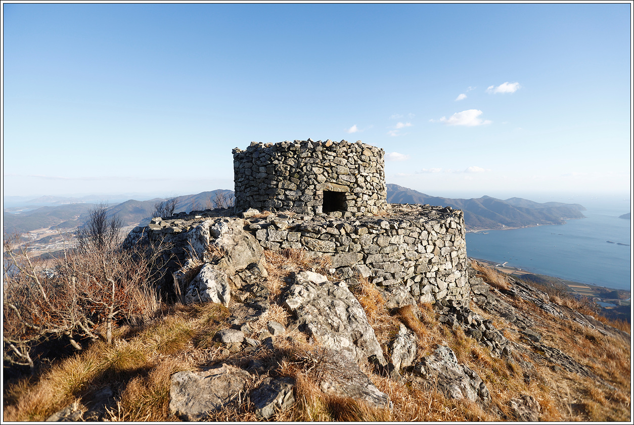 ▽ 정상에 오르자 마자 짠~하고 나타나는 봉화대다. 이 봉화대도 어디서 많이 본 듯한데 알고보니 설흘산의 봉화대와 흡사하다. 남해군에서 같은 형태로 쌓아 올린 것 같다.