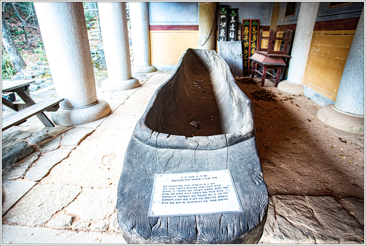 이러한 구시통은 유명사찰인 순천의 조계산에 있는 송광사에서도 쌀 7가마(4천명 분)의 밥이 들어가는 용기를 본 적이 있는데 이곳에서 또 보게 되었다.