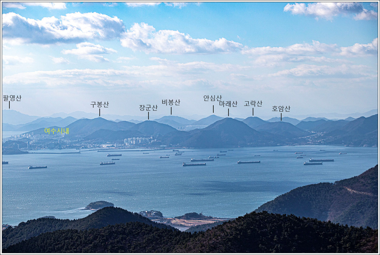 ▽ 멀리 여수시내로 부터 영취산까지 아래 사진에서 망원렌즈로 자세히 살펴 보기로 한다.