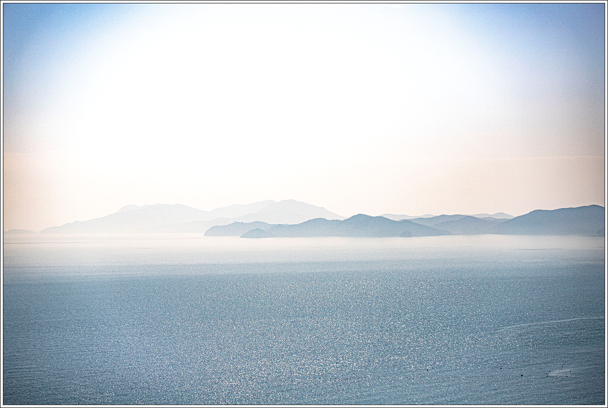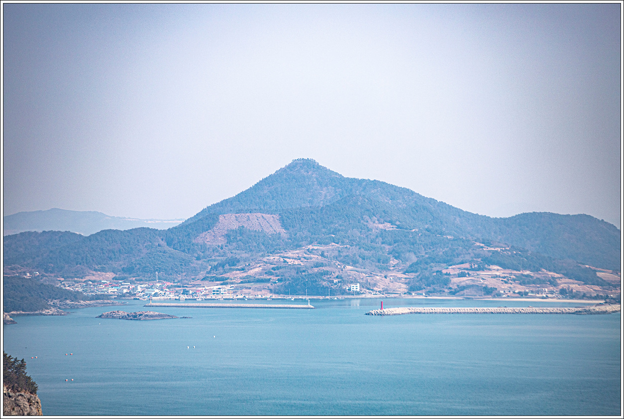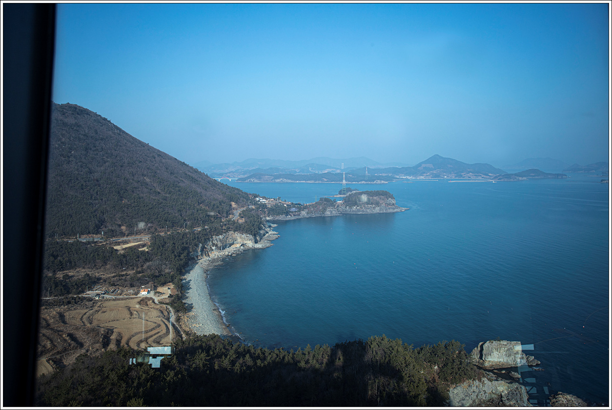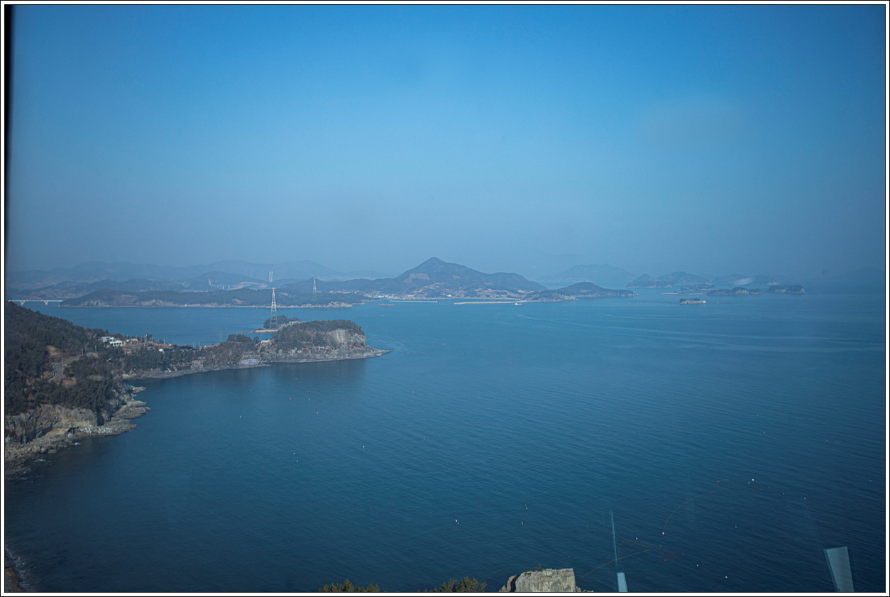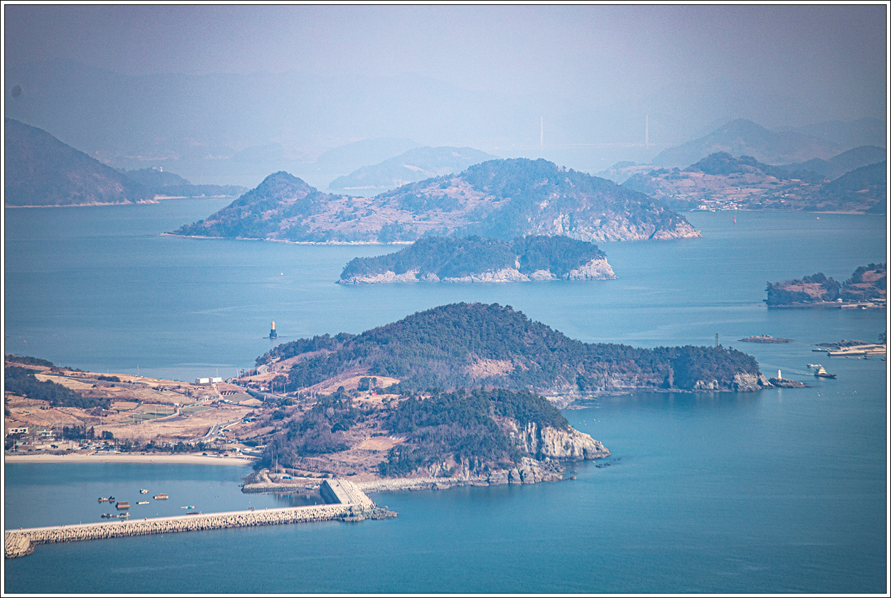▽ 남쪽 방향으로 왼쪽 끝은 외나로도 봉래산과 마치산 끝자락으로 우주발사대가 있는 곳인데 직선거리로 약 15km나 되는데다가 미세먼지로 인해 보이질 않는다.