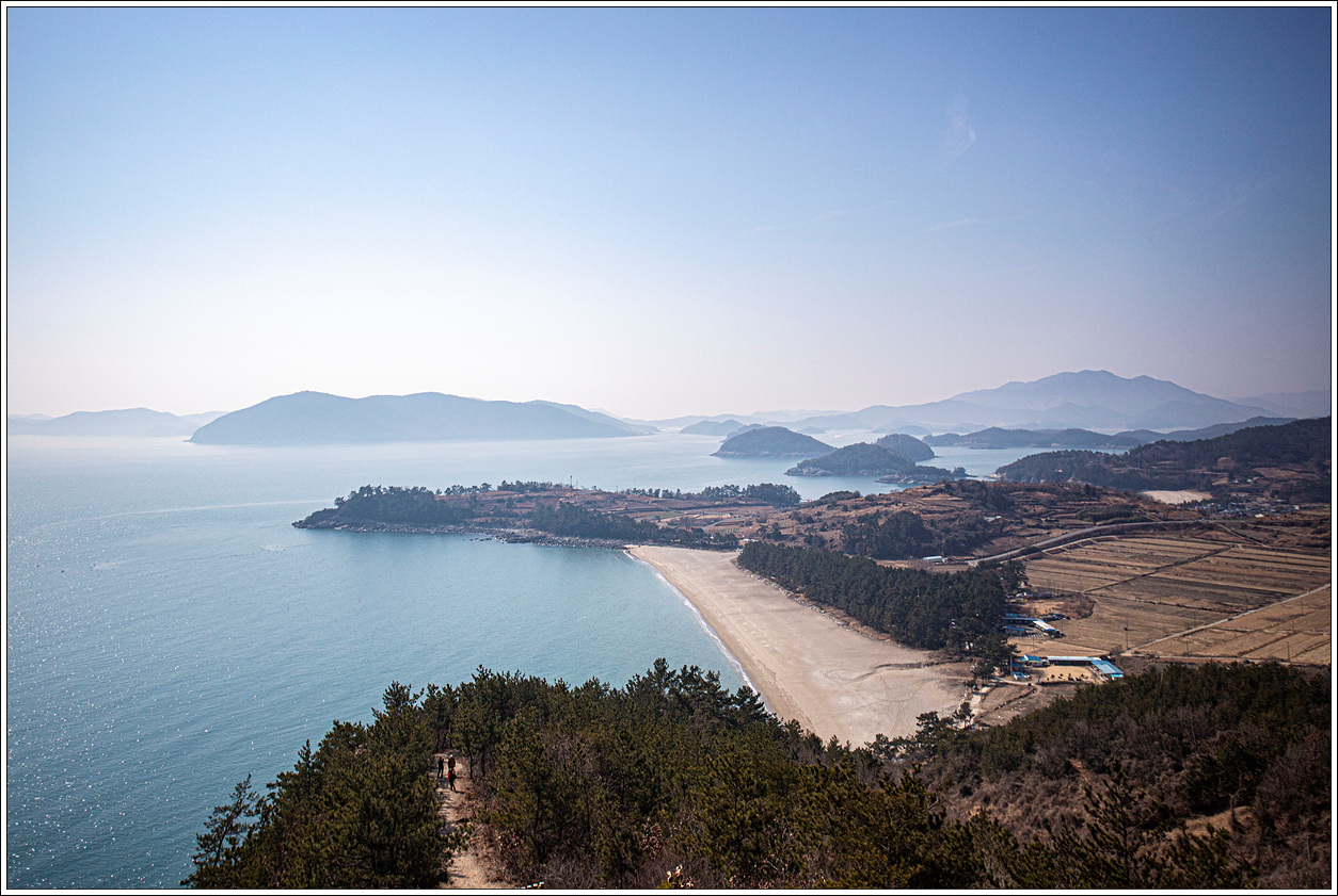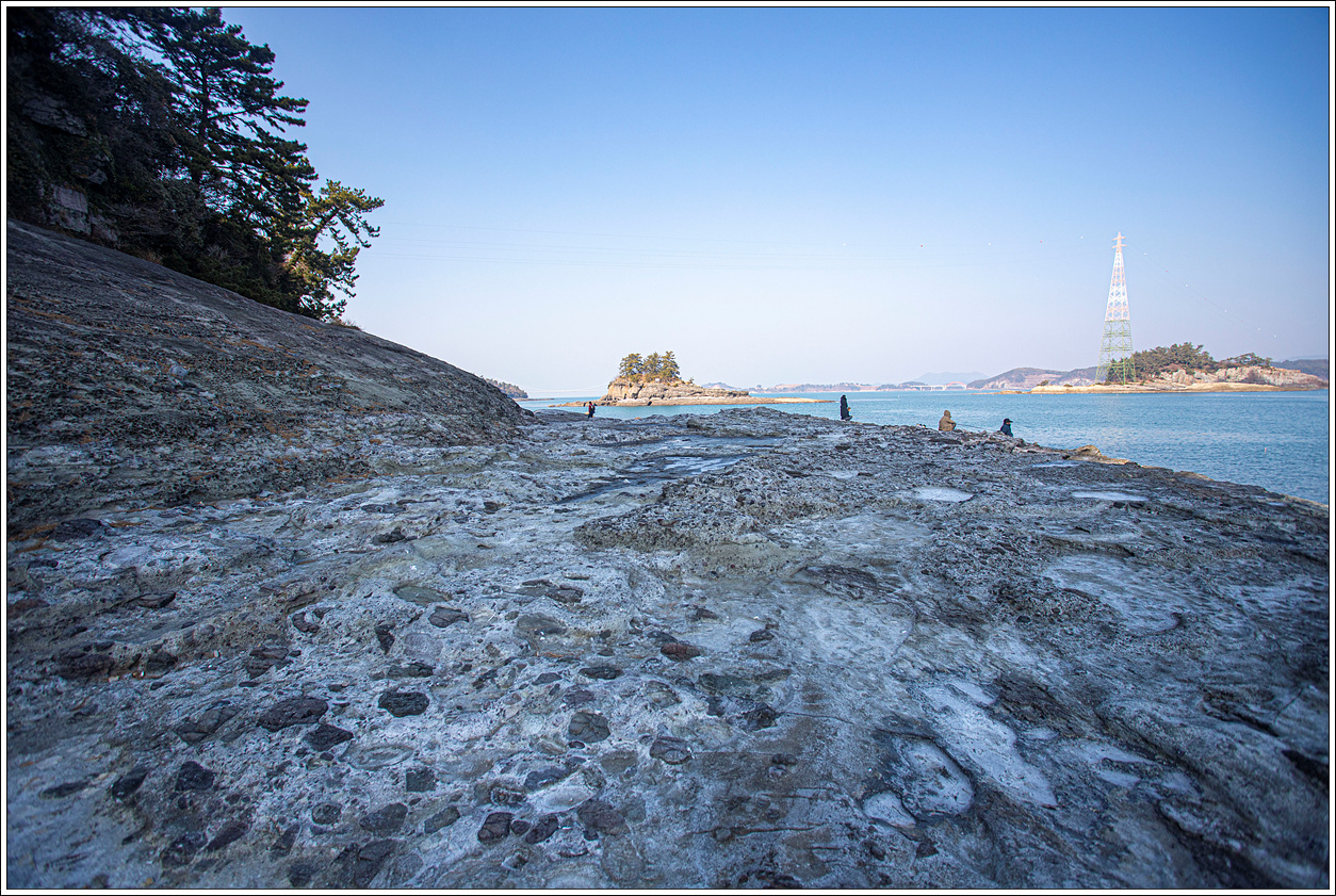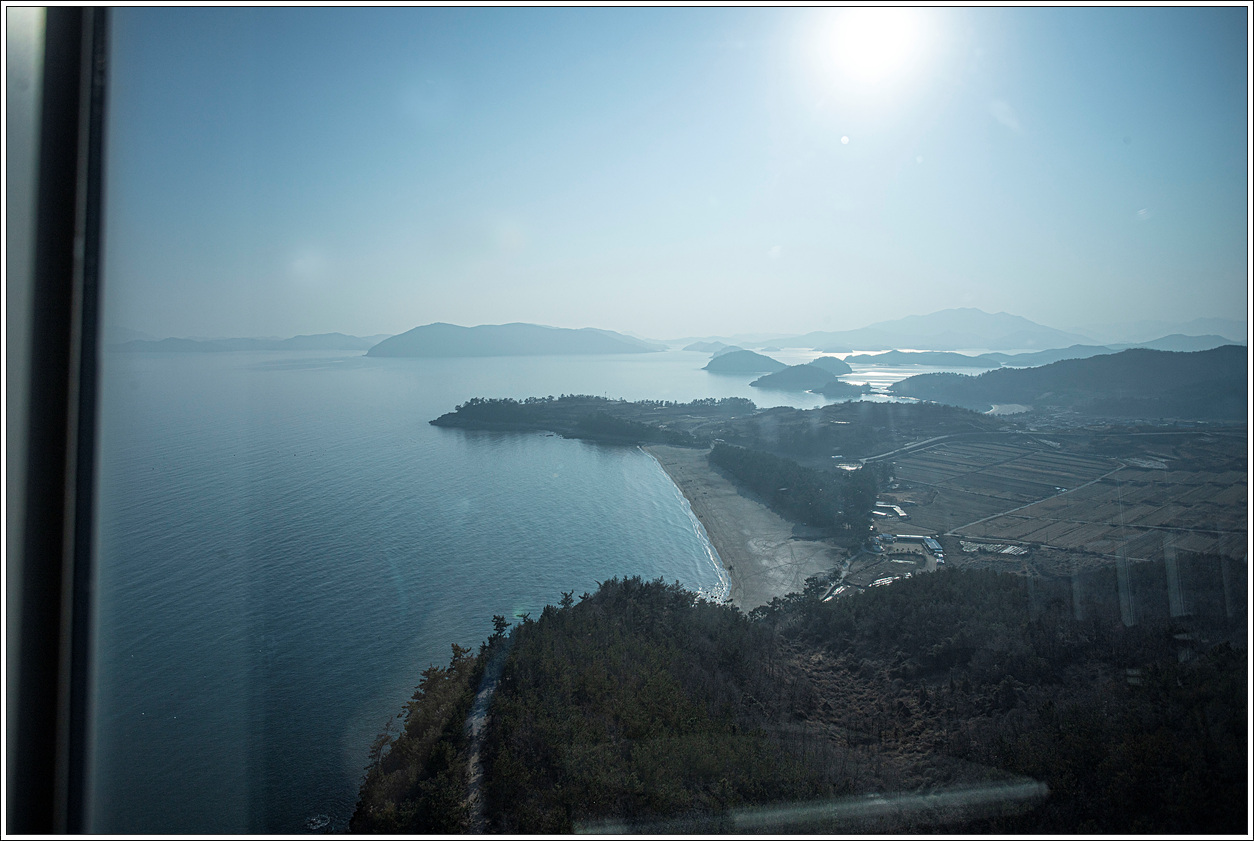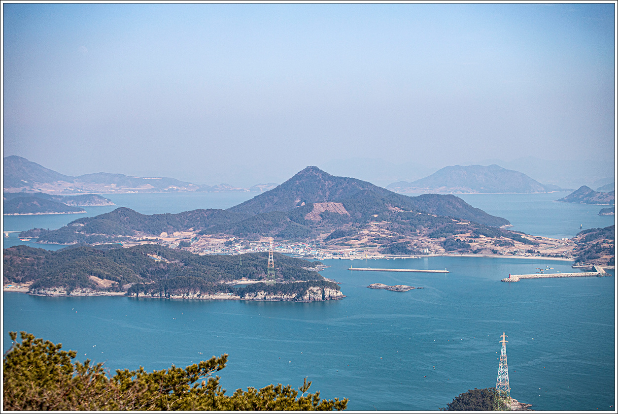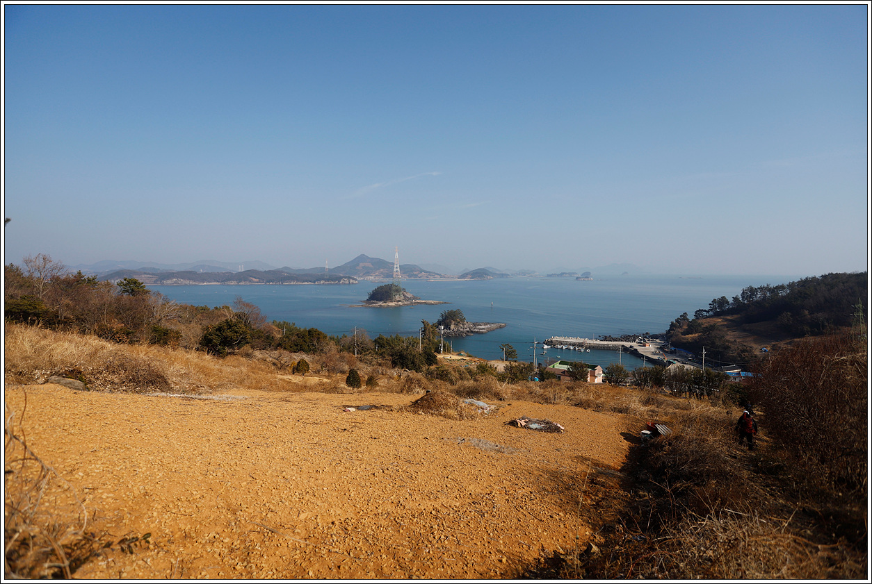 ▽ 낭도 남쪽 해안 앞쪽으로는 추도, 사도, 증도, 장사도와 뒷쪽으로 상화도, 하화도, 오른쪽으로는 개도가 흐릿하게 보인다.