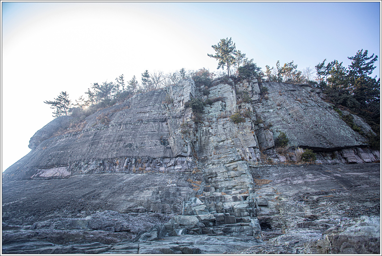 ▽ 바위에 아슬하게 붙어 생존하고 있는 곰솔에 눈길이 간다.