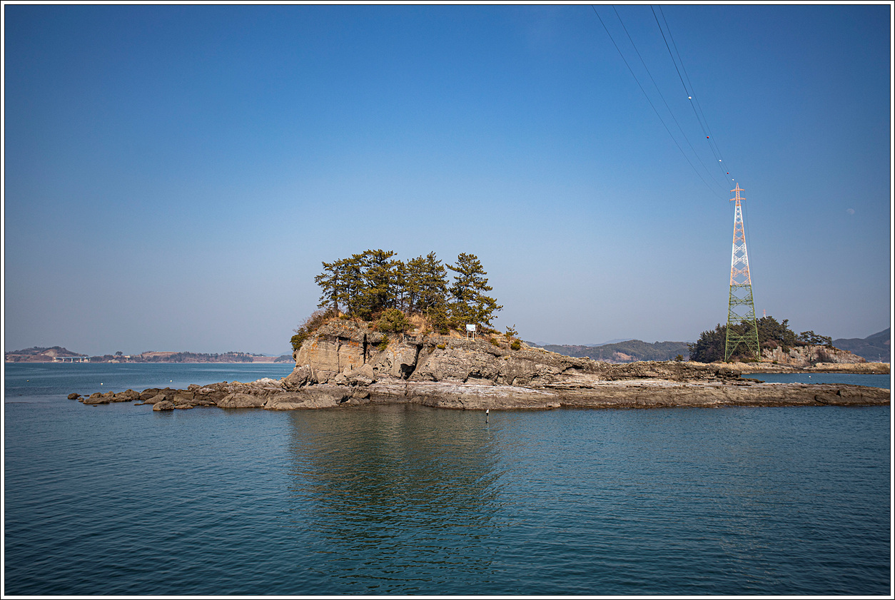 ▽ 통영에만 있는 줄 알았던 매물도가 이곳에도 있다. 바로 앞이 내매물도, 뒷편의 전선탑이 있는 곳이 대매물도이다.