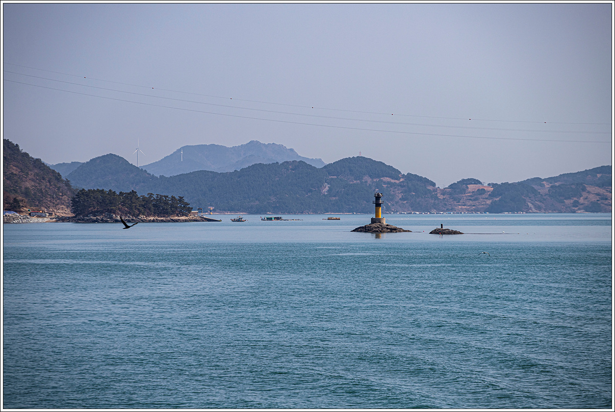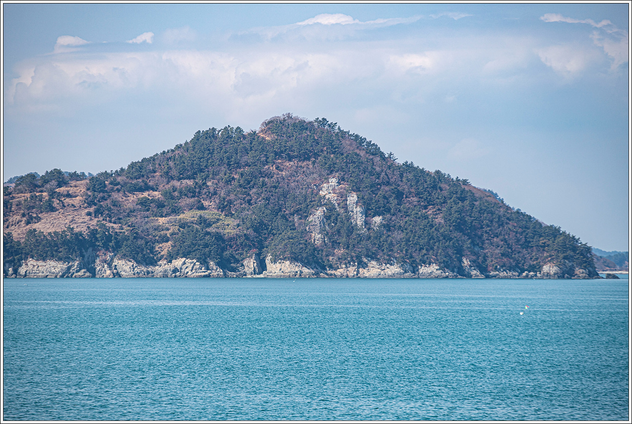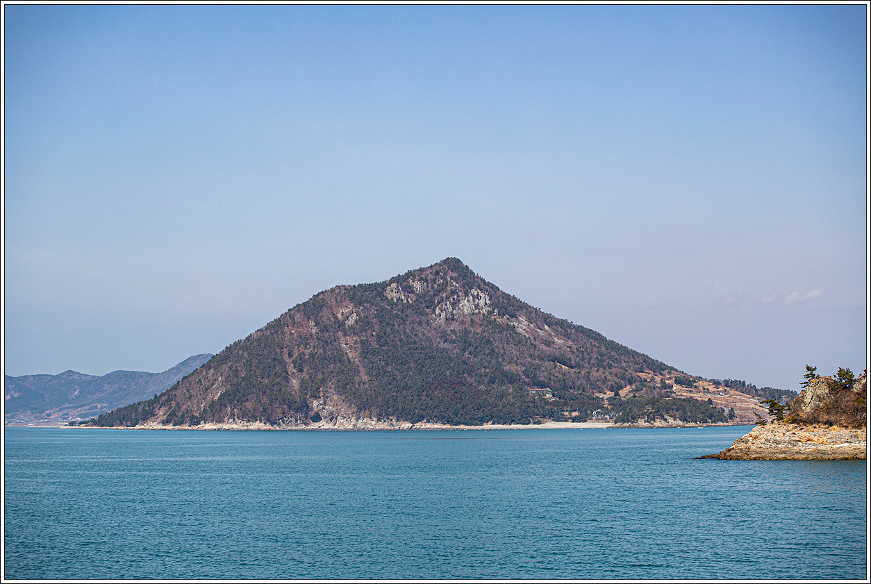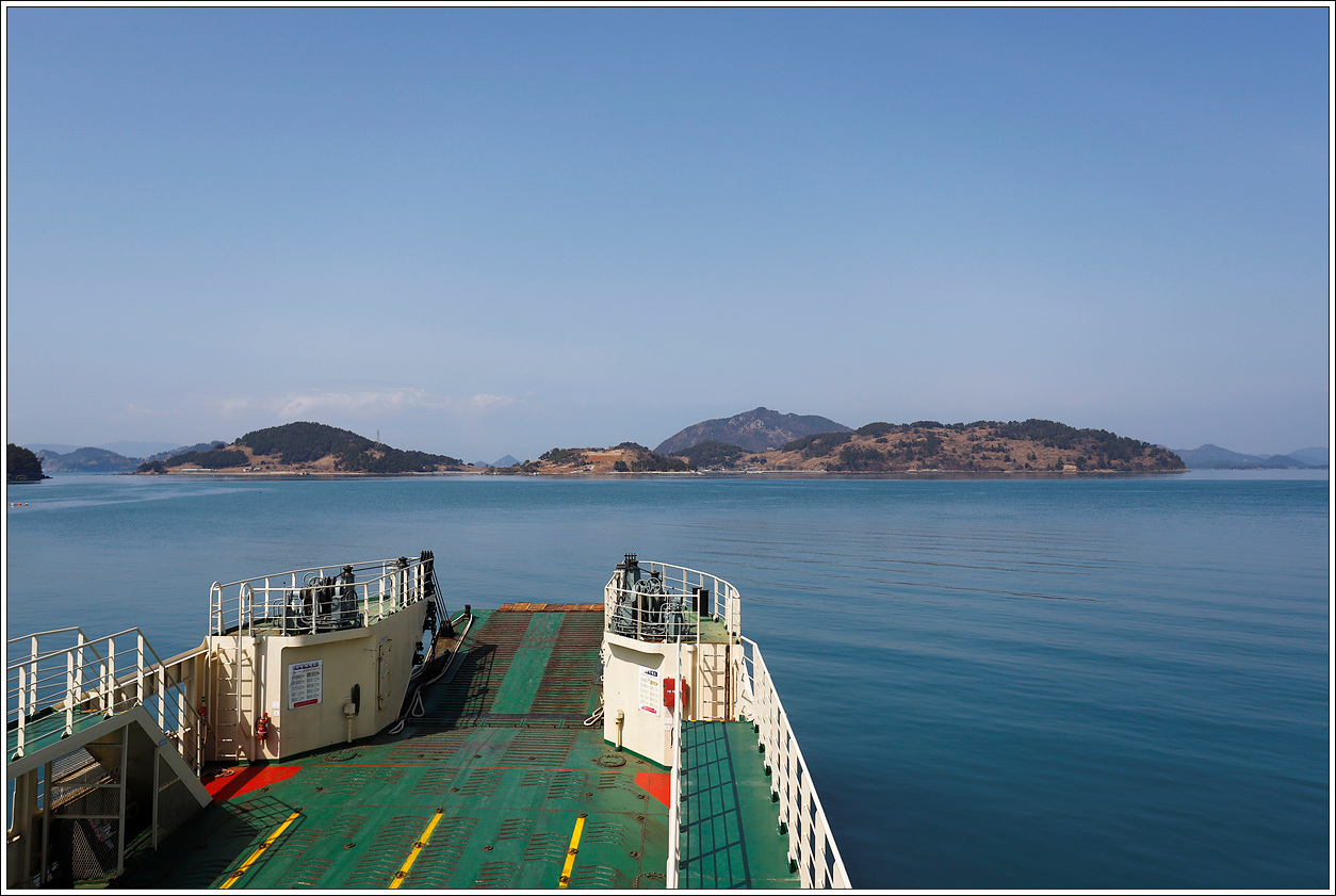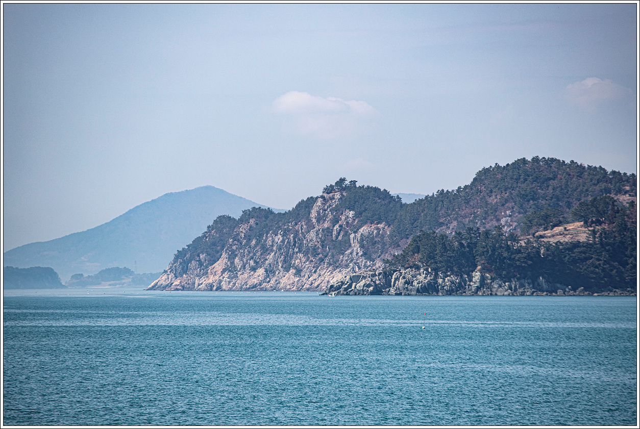 ▽ 봉황산과 천제봉을 마지막으로 뒤로 하며 카페리호는 개도를 빠져 나간다.