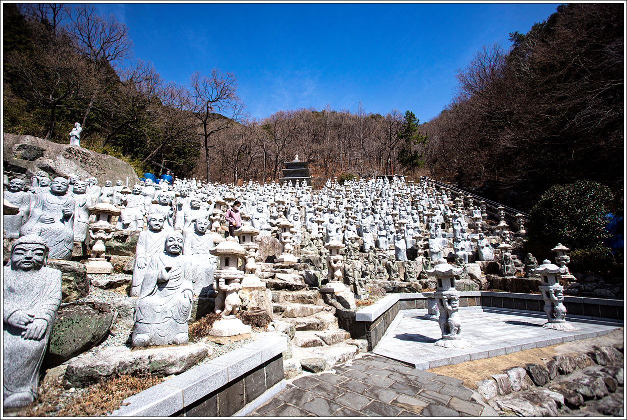 ▽ 큰법당 위로 오백나한상이 세워져 있어 별세계에 온 느낌이다.