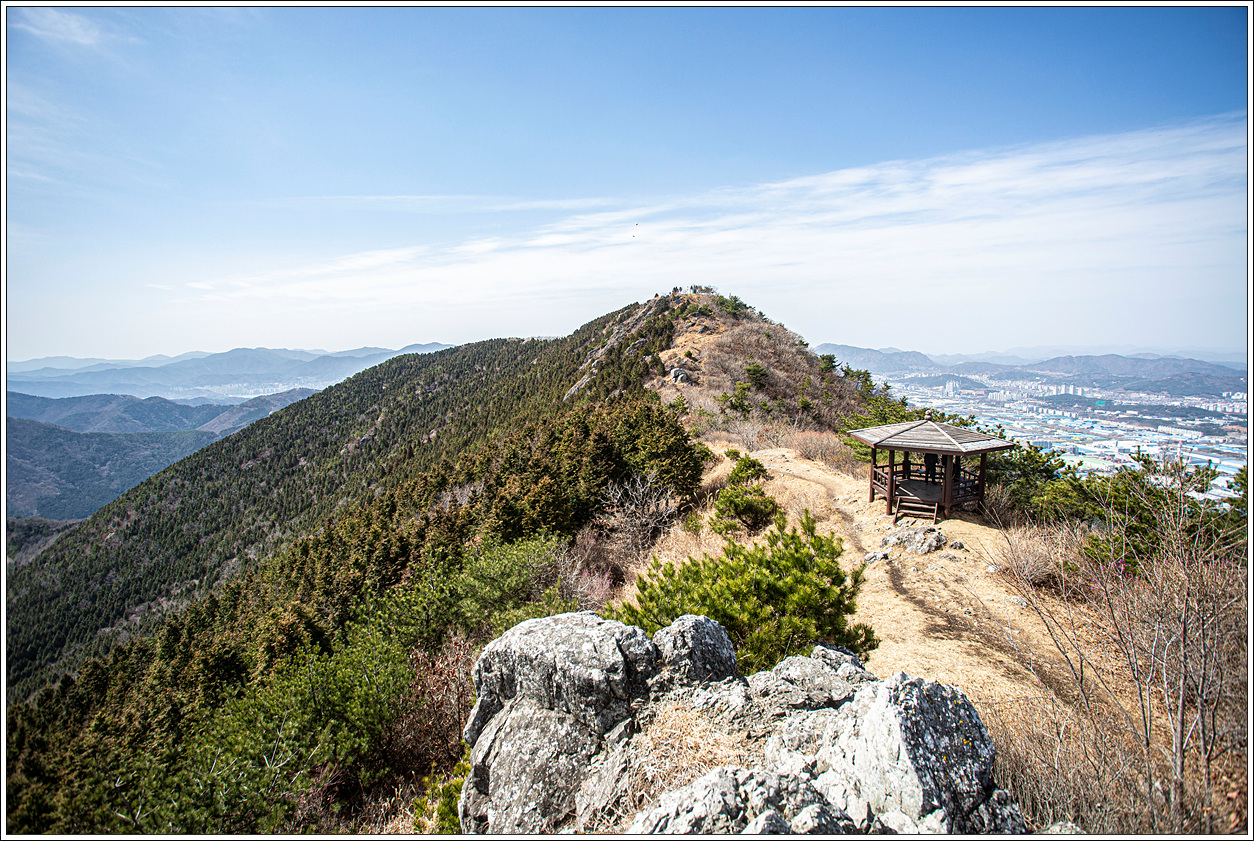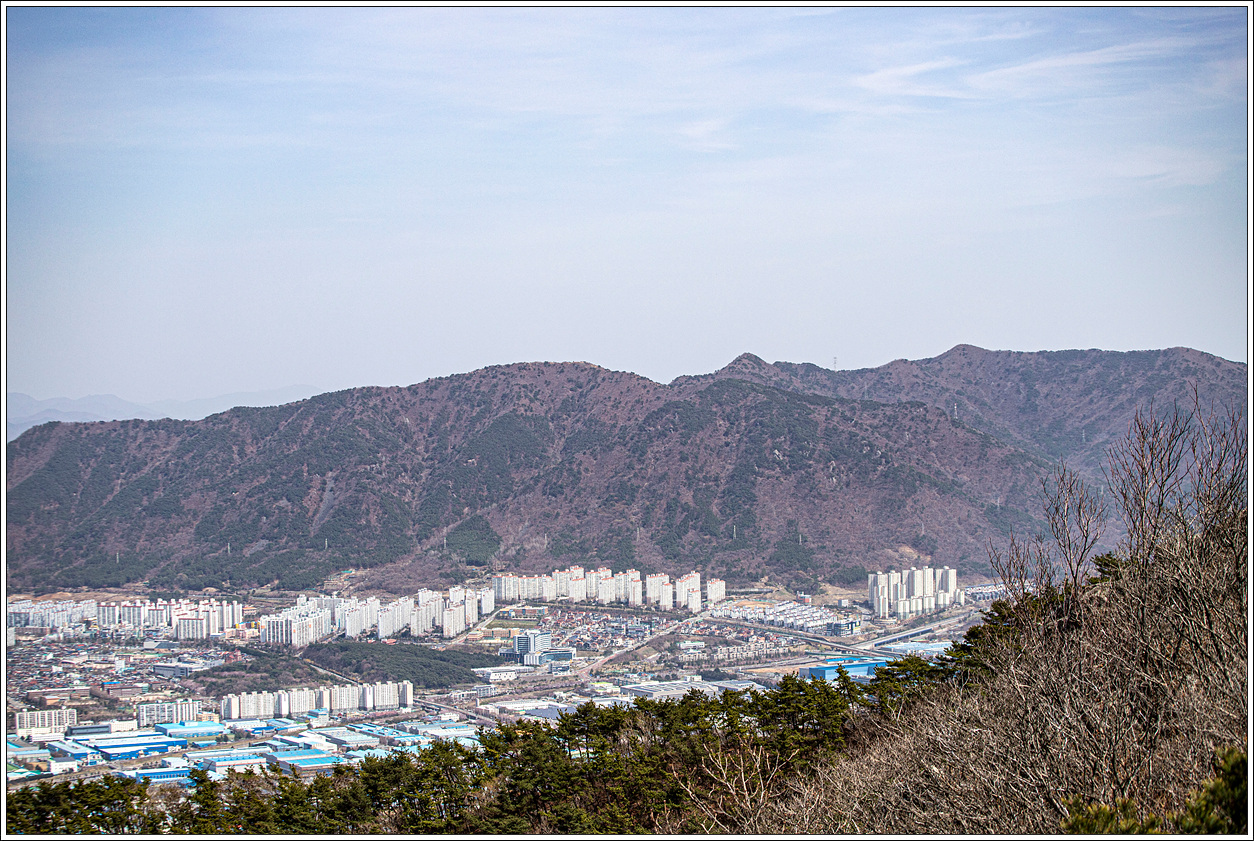 ▽ 북서 방향으로는 가운데 멀리 천주산이 보이고 창원국가산업단지가 위치해 있다.