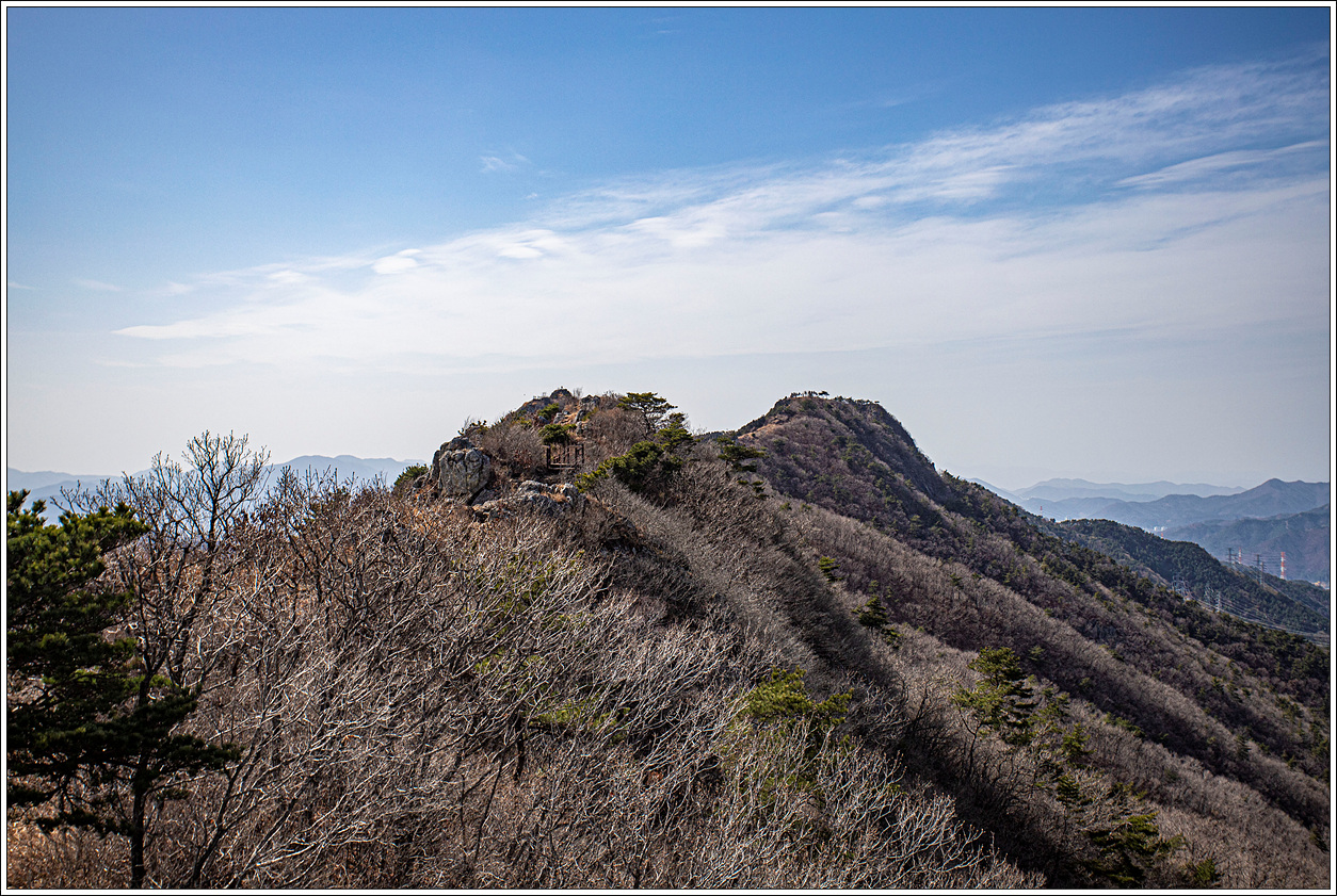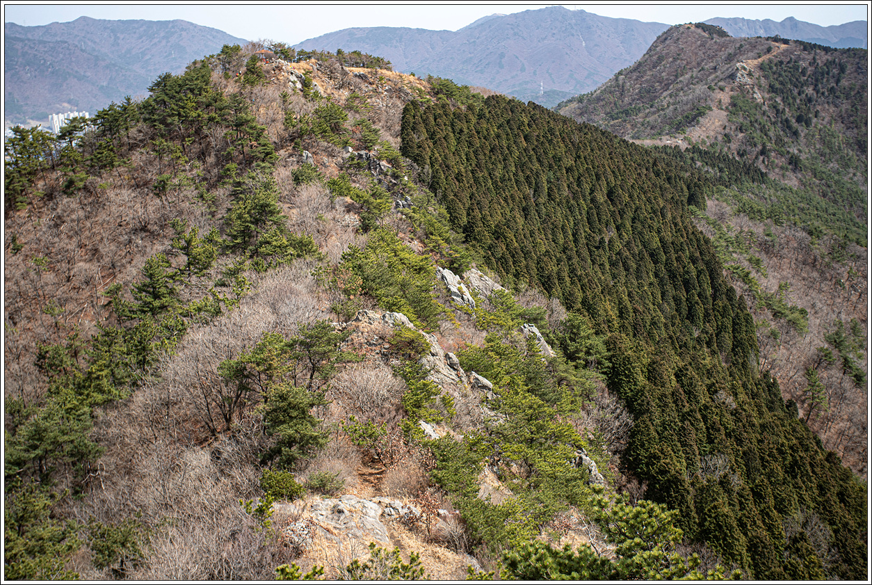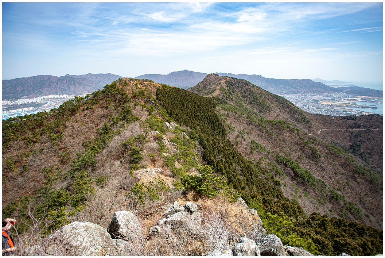 ▽ 진행하다 바위전망대에서 조망해 본 진행방향의 풍경으로 그대로 진행하면 바로 멀리 보이는 불모산으로 이어지겠다.