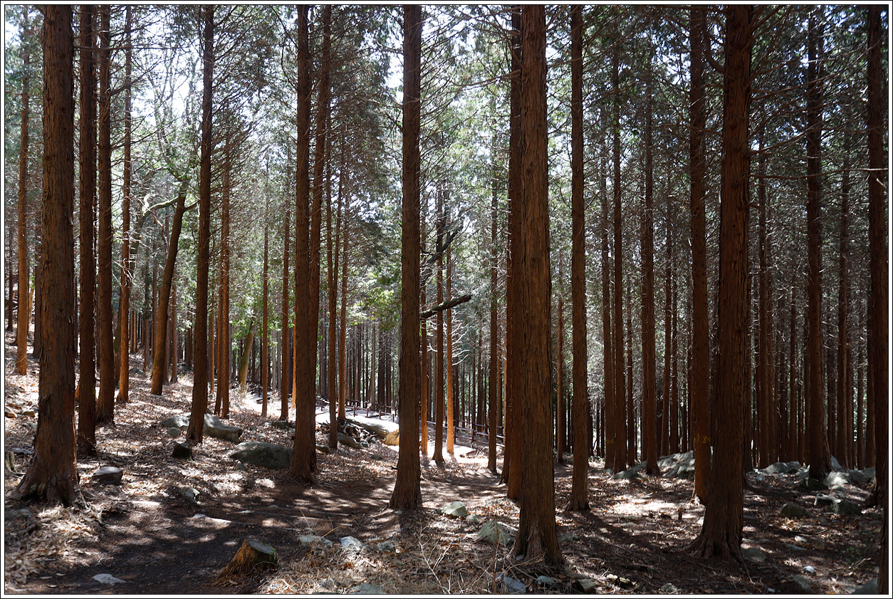 ▽ 산중으로 접어드니 편백나무 숲길이 이어지는데 사시사철 산림욕으로 시민들이 자주 찾는 명소일 것으로 보인다.