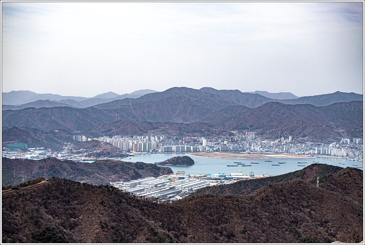 ▽ 하산하기 전 마지막으로 담아 본 진해만 전경으로 바로 아래는 창원시관내 국도 대체 우회도로가 한창 건설 중이다.
