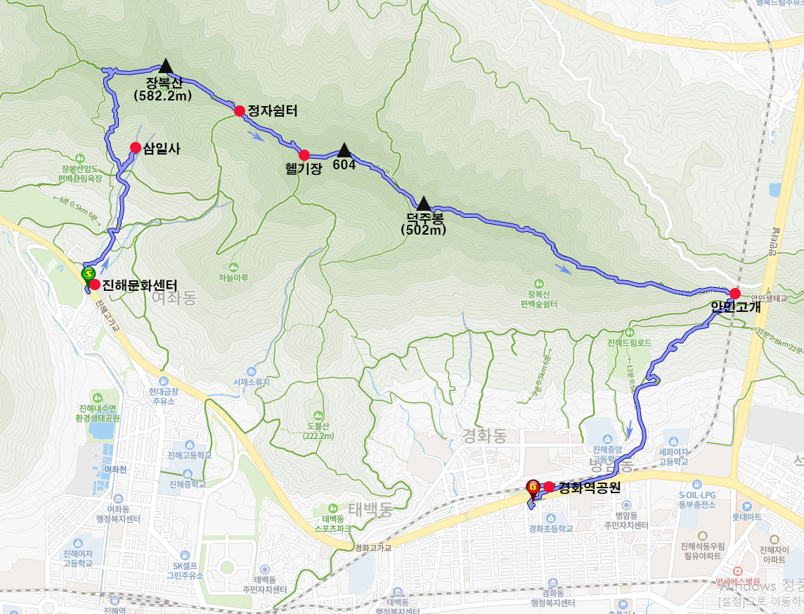 ♣ 산행코스: 진해문화센터-삼일사-장복산-덕주봉-안민고개-진해중앙고-경화역공원