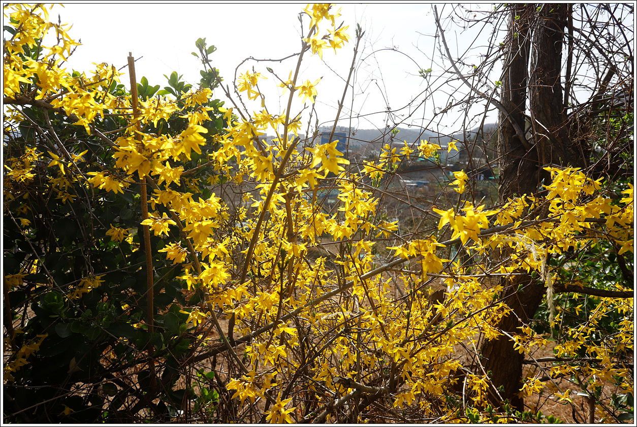 ▽ 만개한 개나리도 올해 이곳에서 처음 보니 새삼 봄이 왔음을 실감하는 오늘이다.