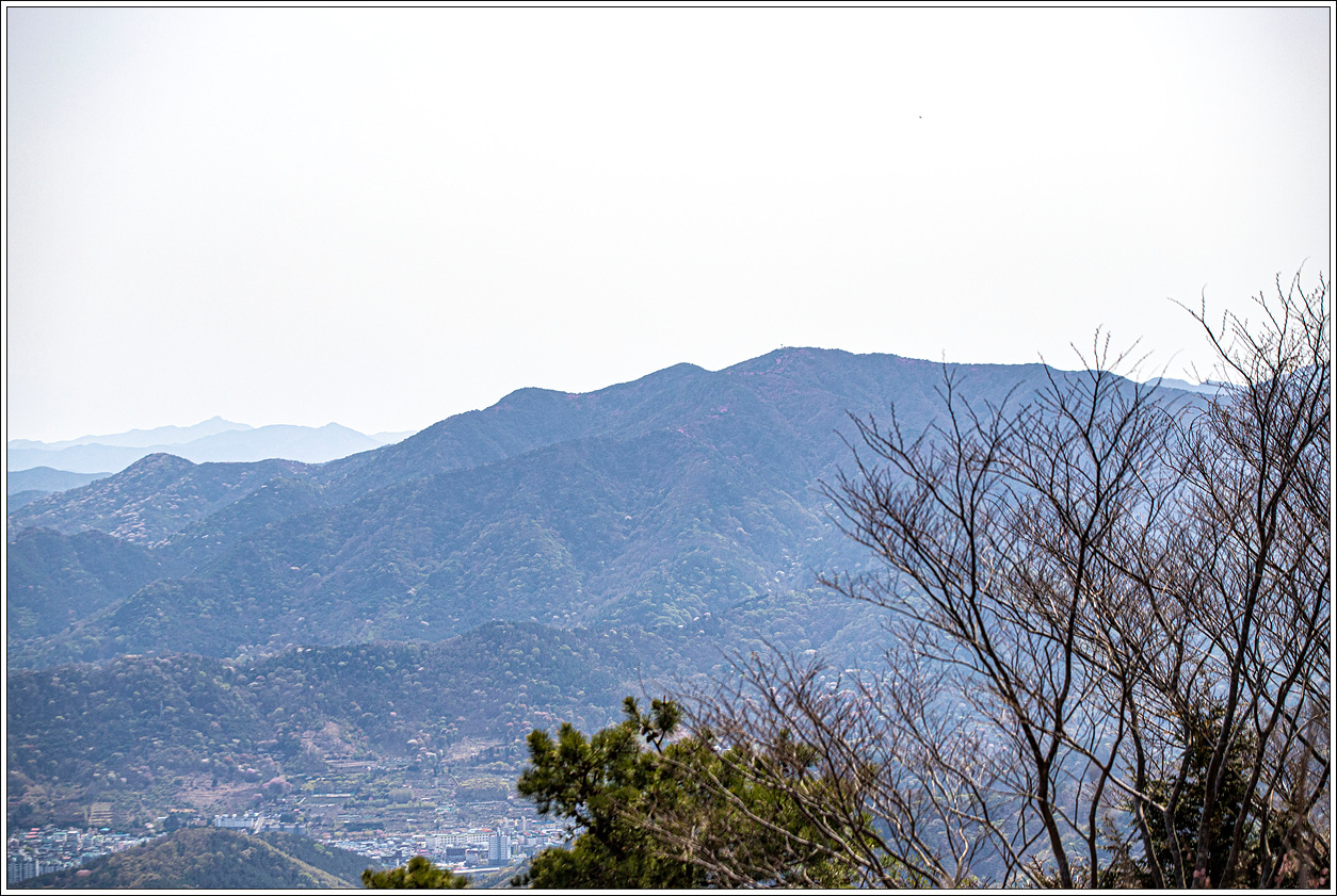 ▽ 꽤나 가파른 능선을 오르니 창원시내가 눈에 들어오고 2주전에 올랐던 장복산과 익혔던 주변의 산군들이 시원하게 조망된다.