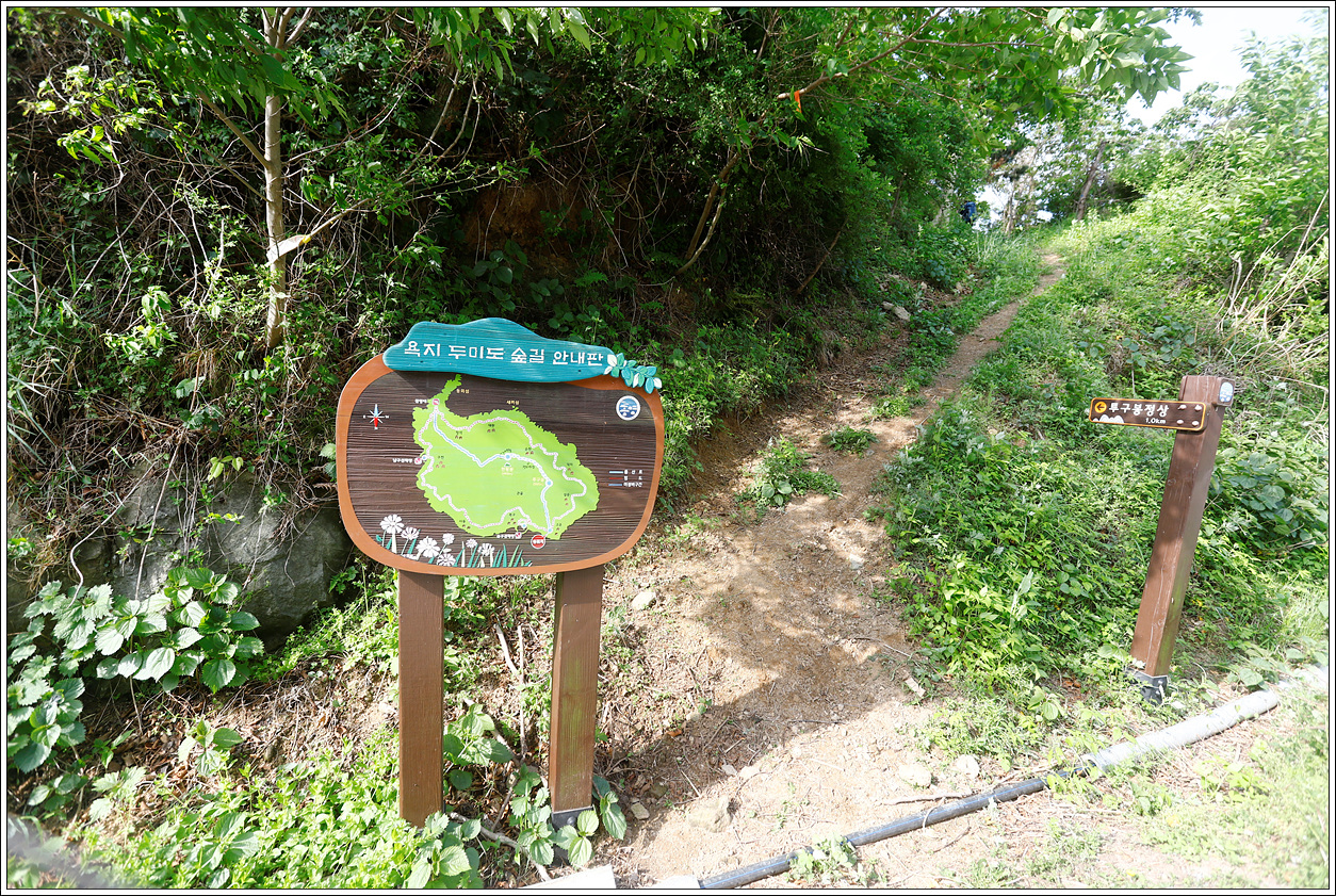 ▽ 섬 한바퀴를 돌 수 있는 임도가 산 중턱에 유일하게 나 있고 그 아래로 새끼섬이 자리하고 있다.