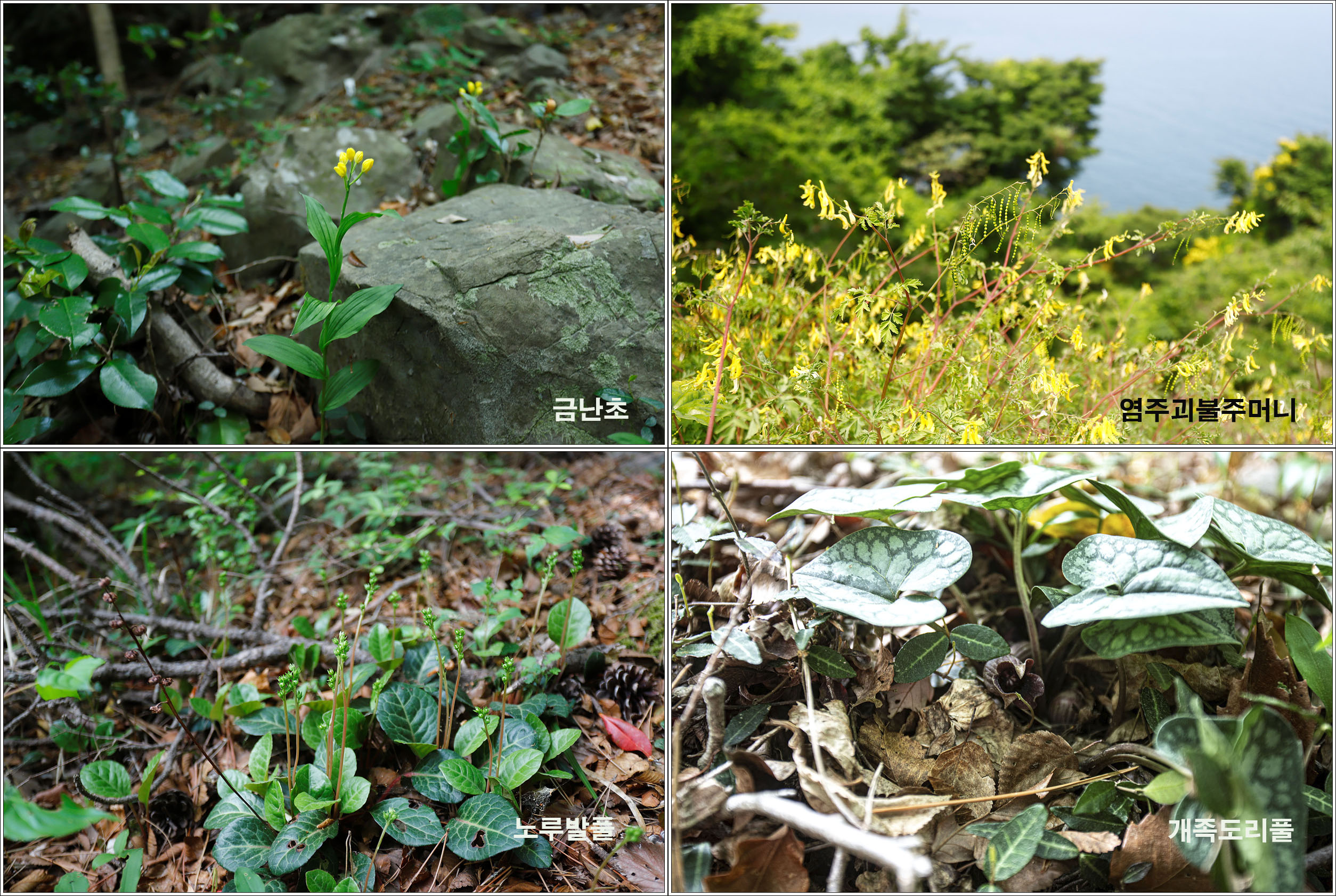 ▽ 산행시간은 충분하니 주변을 찬찬히 둘러보게 되고 각종 야생화들이 눈을 즐겁게 한다 . 보기 드문 금난초도 보이고 염주괴불주머니도 염주를 앙증맞게 달고 있고, 노루발풀은 꽃망울을 금방이라도 터트릴 것 같고, 개족도리풀도 잎새 아래 꽃을 가득 피웠다.