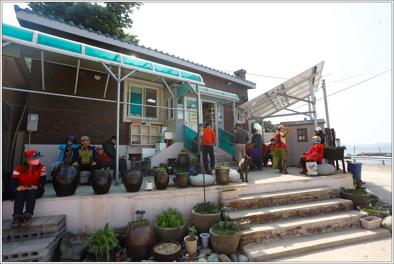 ▽ 두시간 가까이 일찍 하산하여 귀가할 배 시간을 기다리자니 따분하기 이를 데 없는데 마침 작은 가게가 있어 술 한잔을 기울이며 우스게 대화를 나누느라 시간가는 줄 모르게 보내어 다행이다.