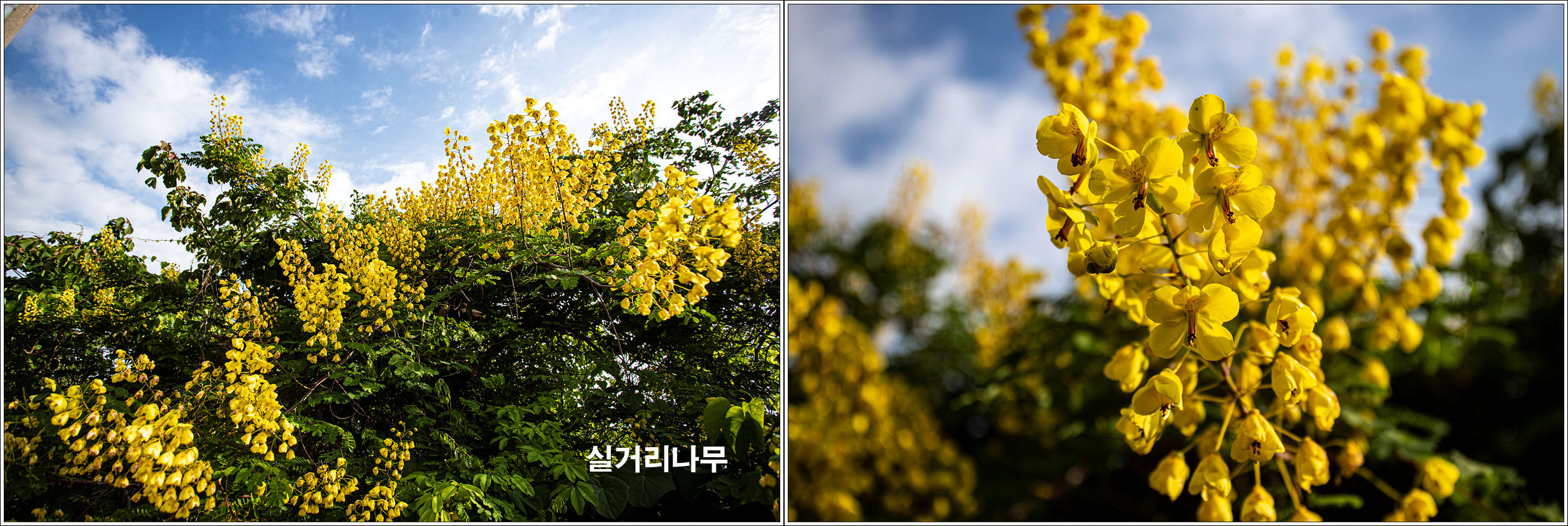 ▽ 산행시작 점 부터 유독 눈에 들어오는 샛노란 꽃송이가 눈길을 끌고 있으니 중부지방에서는 보기 어려운 실거리나무 꽃이 절정으로 폈다.