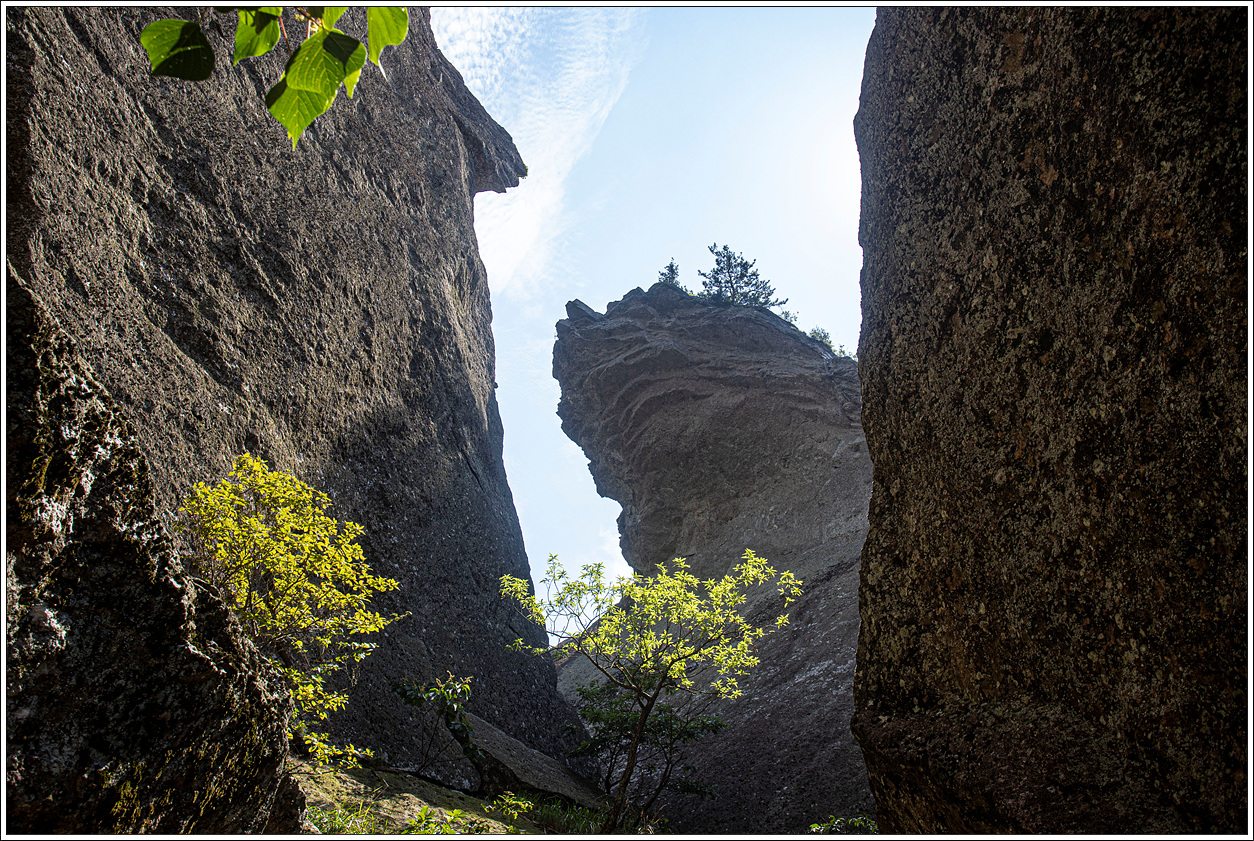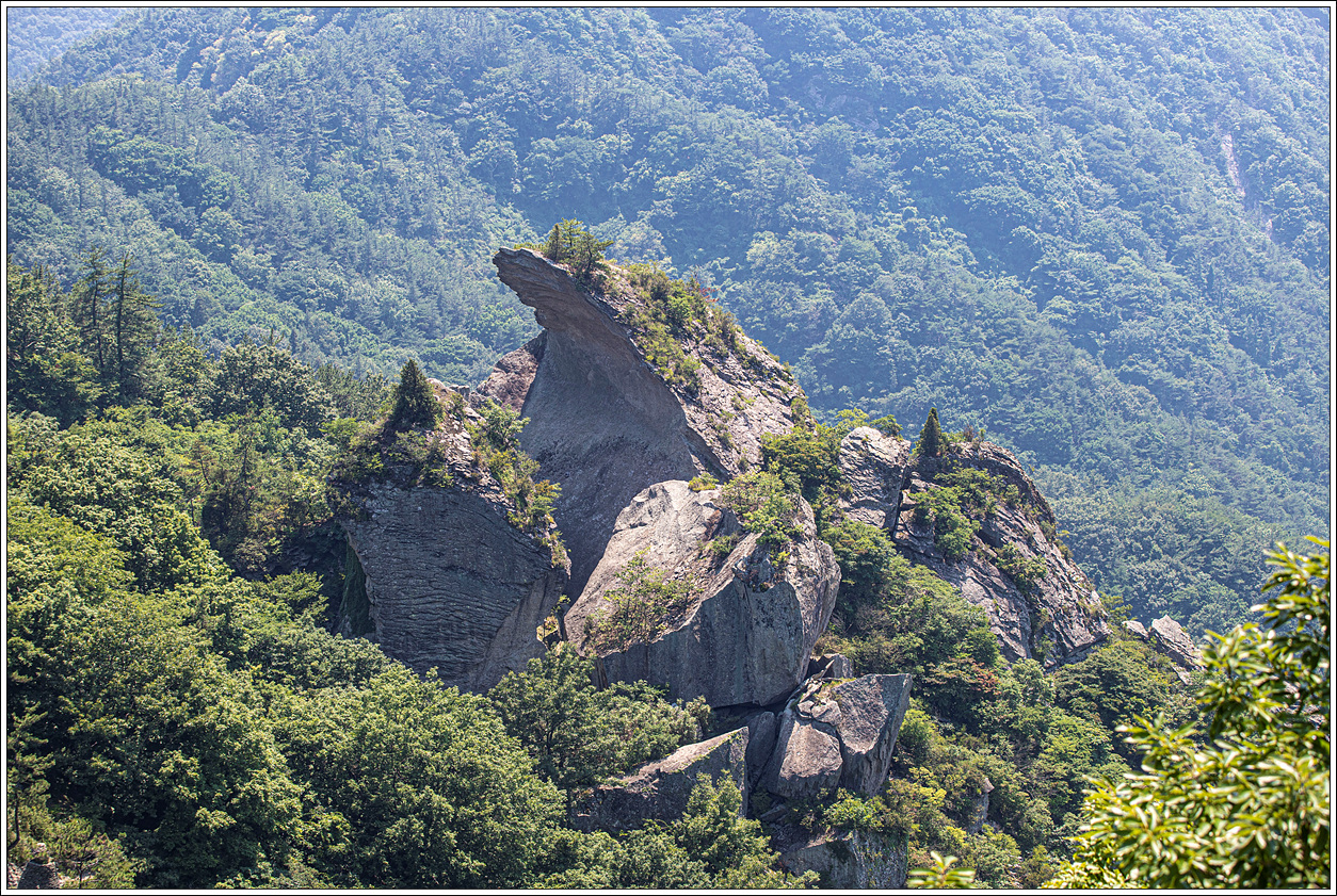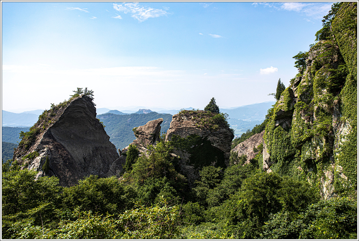 ▽ 칼바위를 돌아 보고 다시 능선위를 오르면서 담아 본 풍경으로 금일 최고의 절경으로 꼽는다. 영겁의 세월동안 바위가 갈라지고 깎기어 자연이 빚어 놓은 예술작품이다.