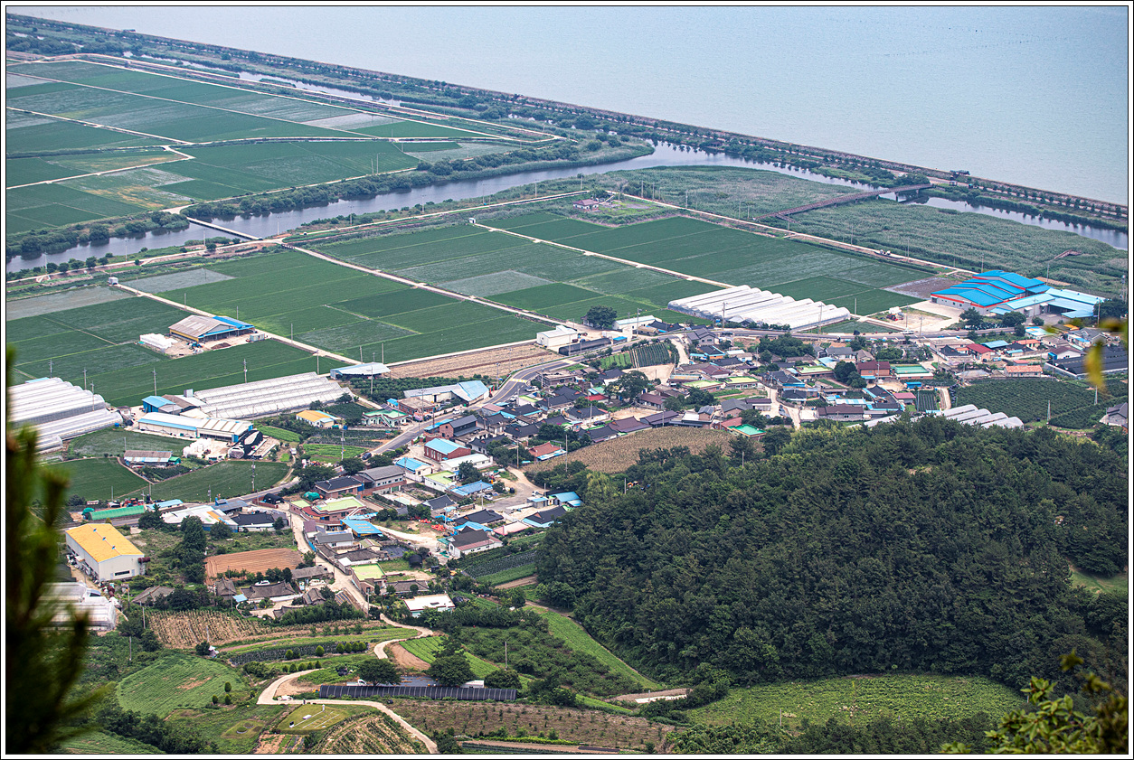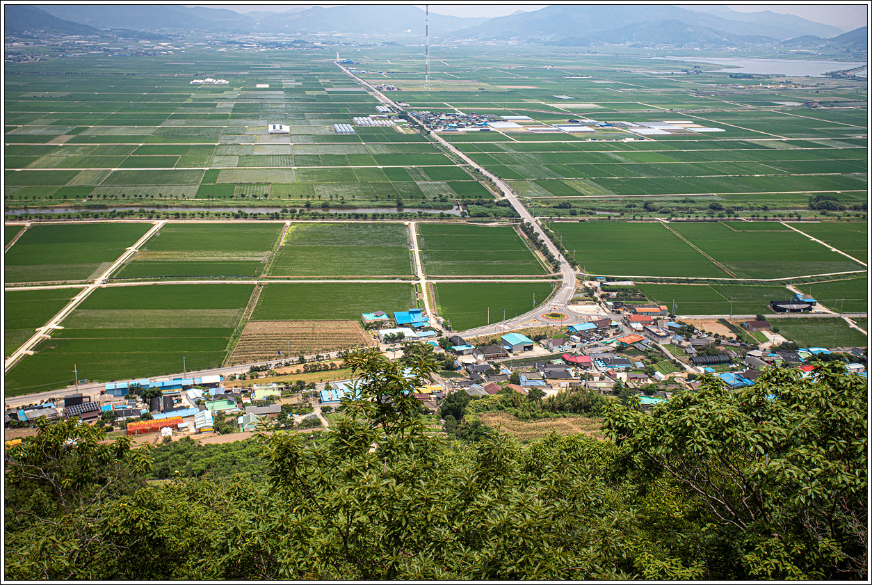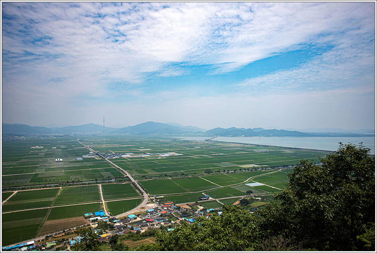 ▽ 오른쪽의 동편으로는 득량만의 일부가 보이고 바둑판과 같은 평야를 보니 내 고향의 풍경을 보는 듯 하다.