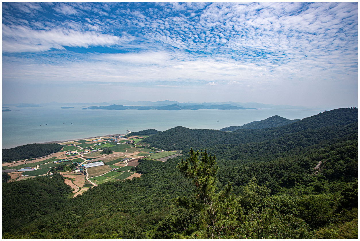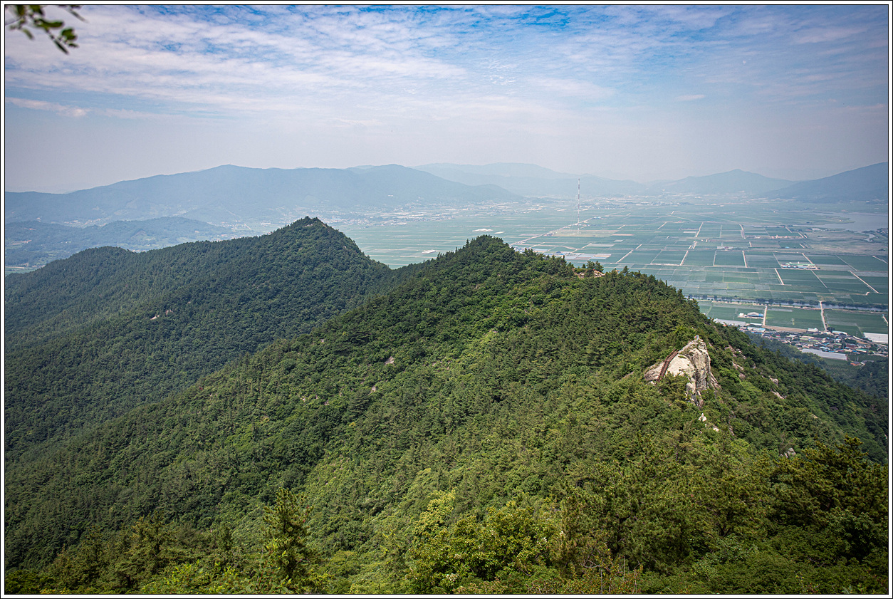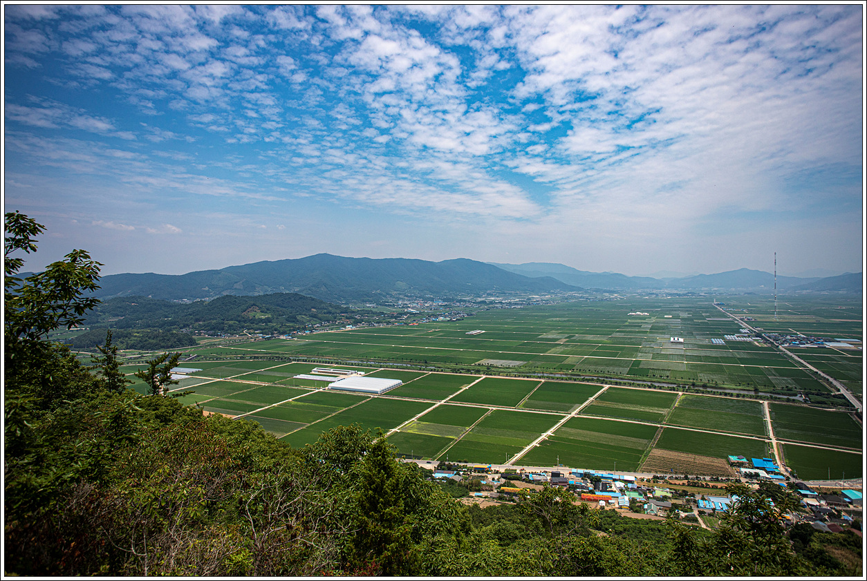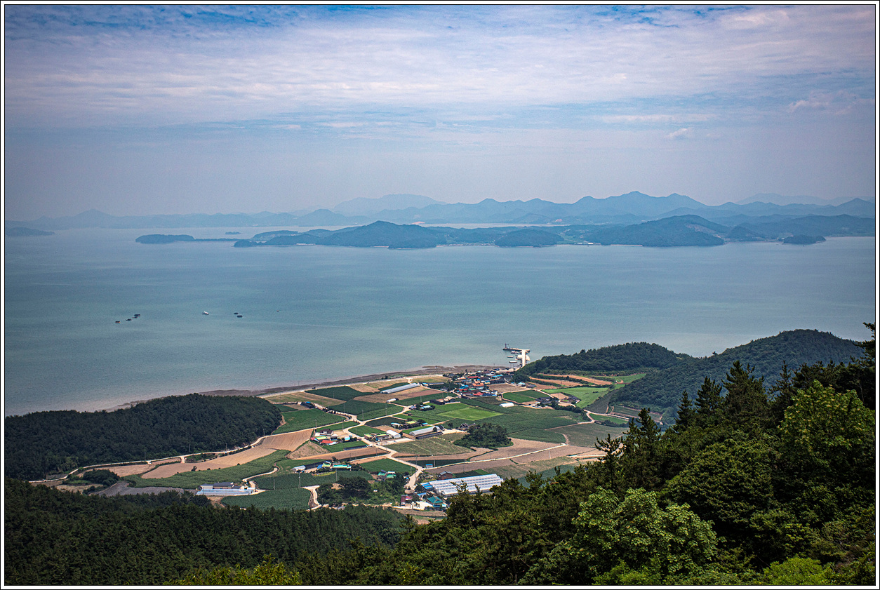 ▽ 오른쪽의 동편으로는 득량만의 일부가 보이고 바둑판과 같은 평야를 보니 내 고향의 풍경을 보는 듯 하다.