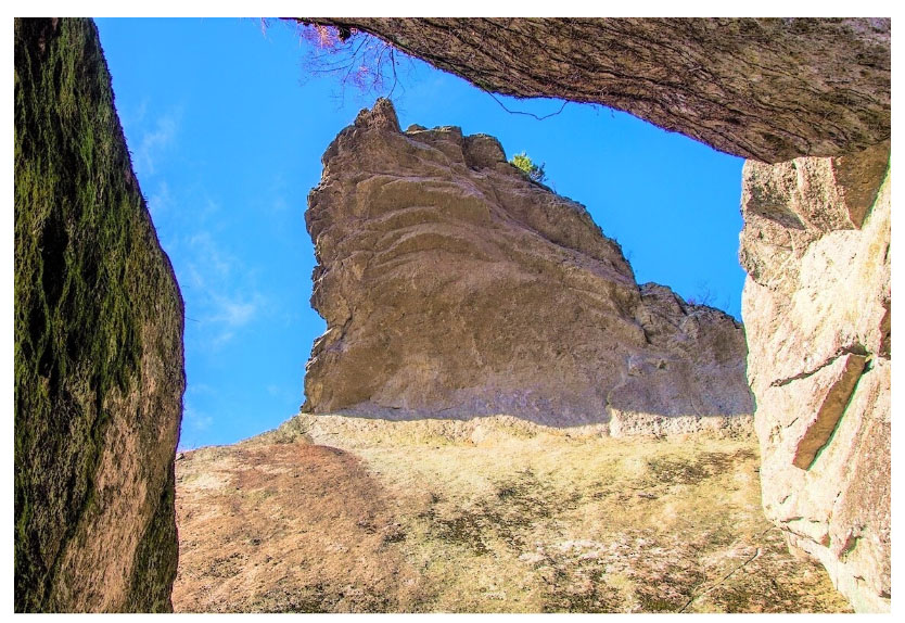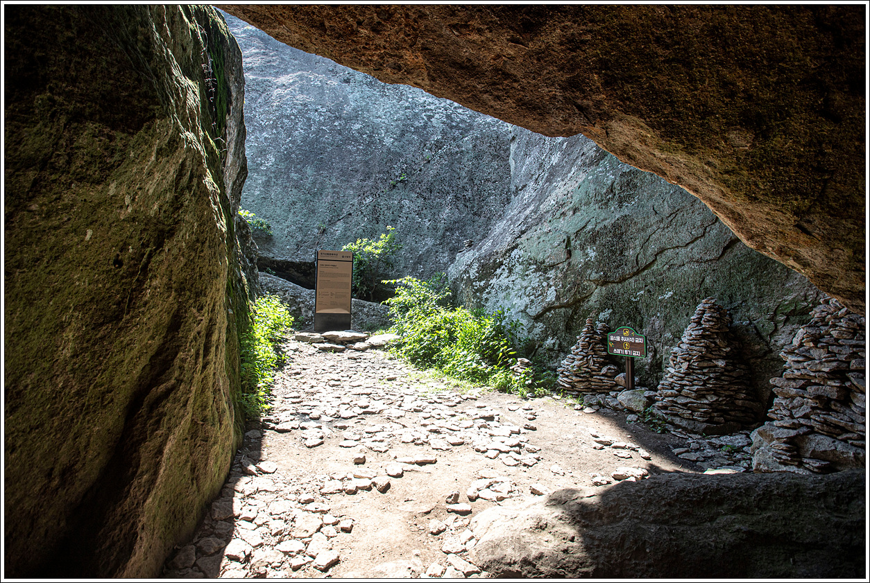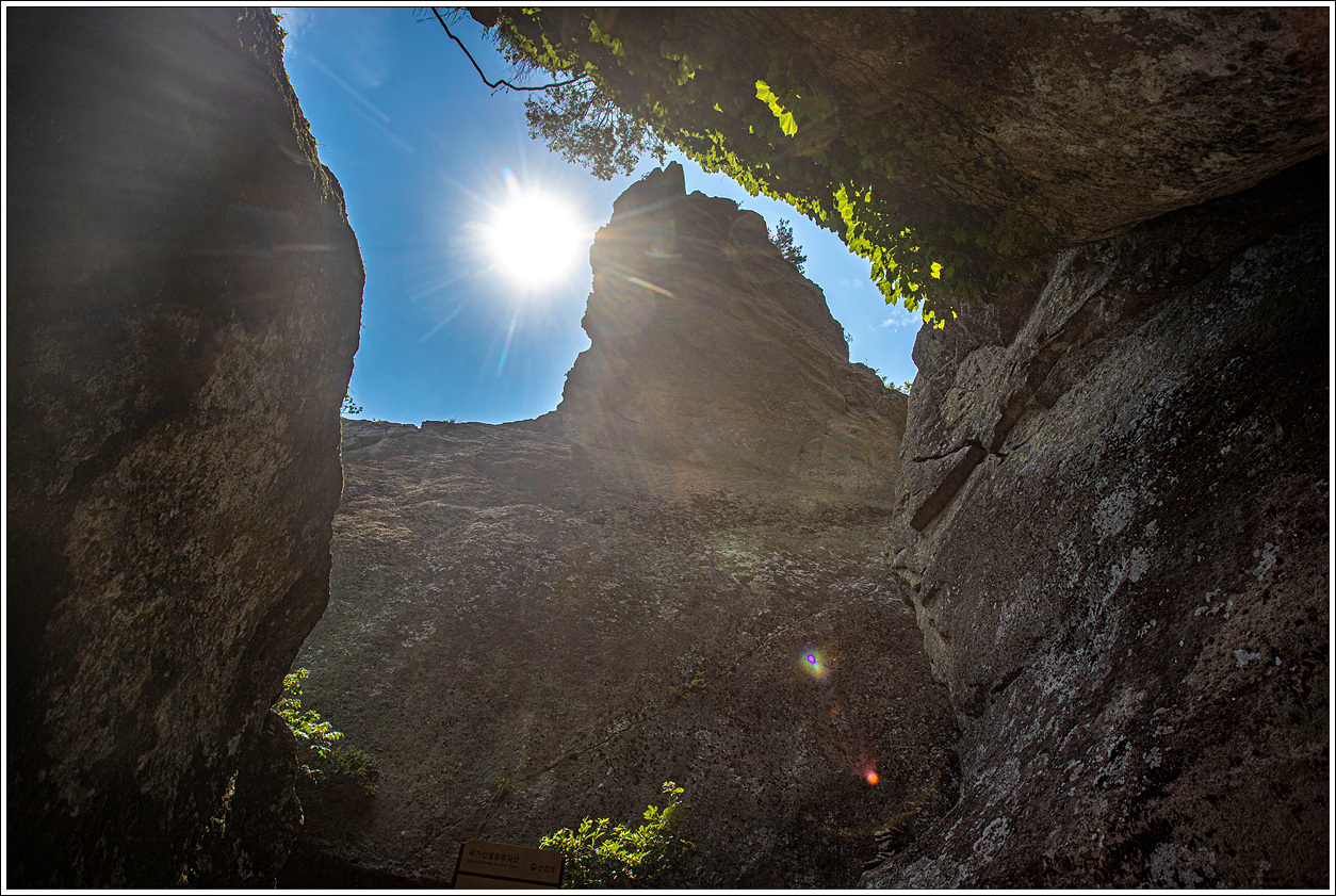 ▽ 칼바위 안쪽에서 입구를 바라 본 바위속 풍경