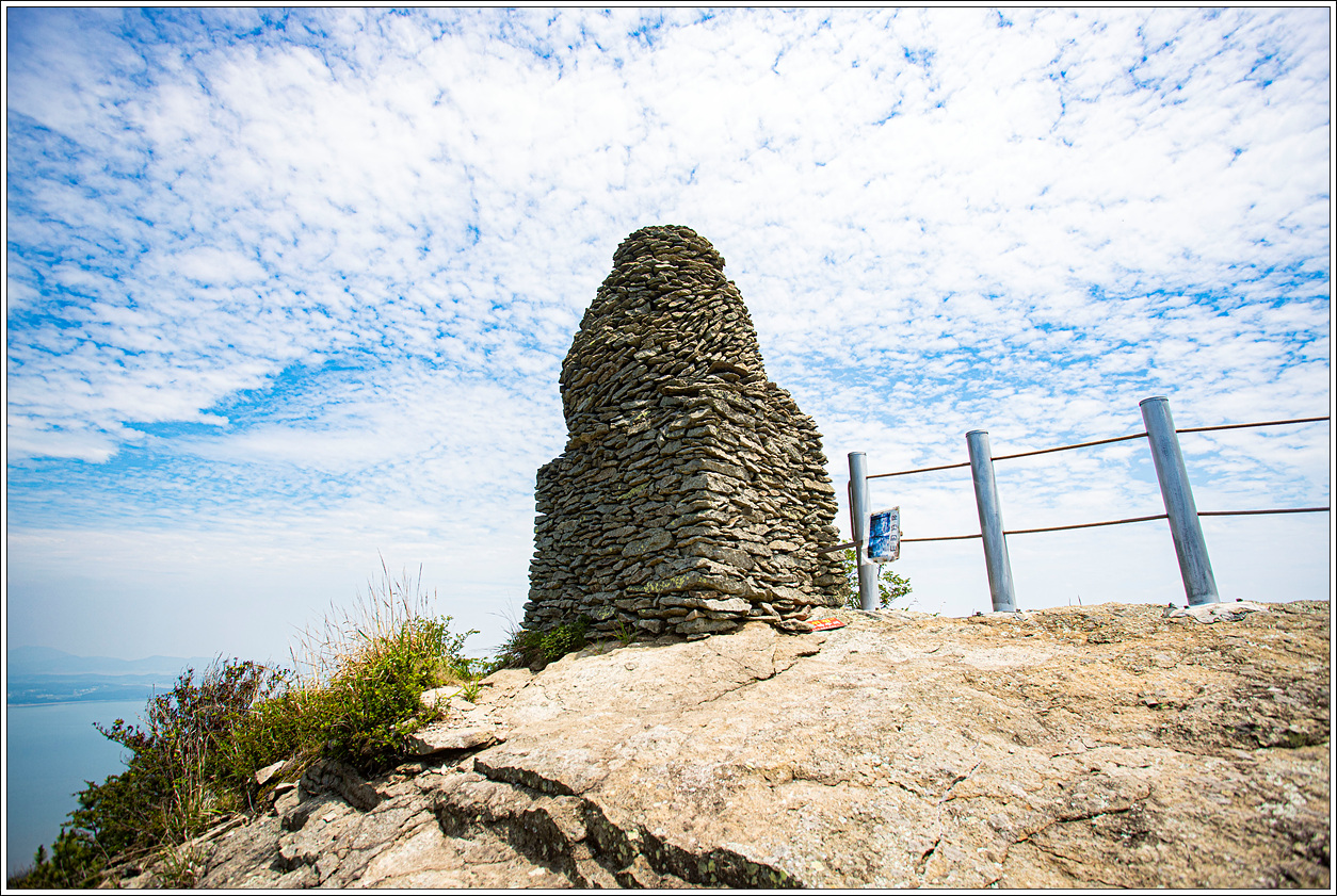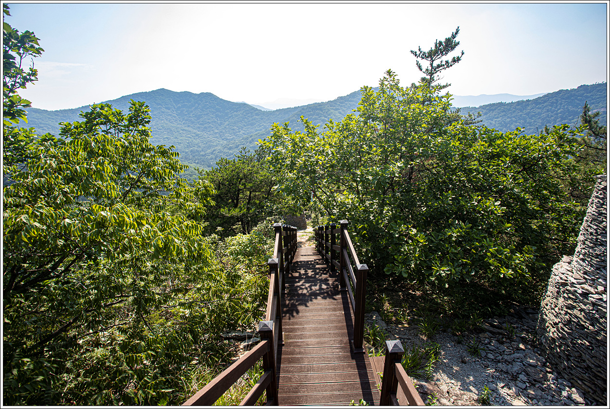 ▽ 정상을 오르면서 돌계단과 성처럼 돌을 쌓아 놓아 마치 정상으로 안내를 하는 듯 하다.