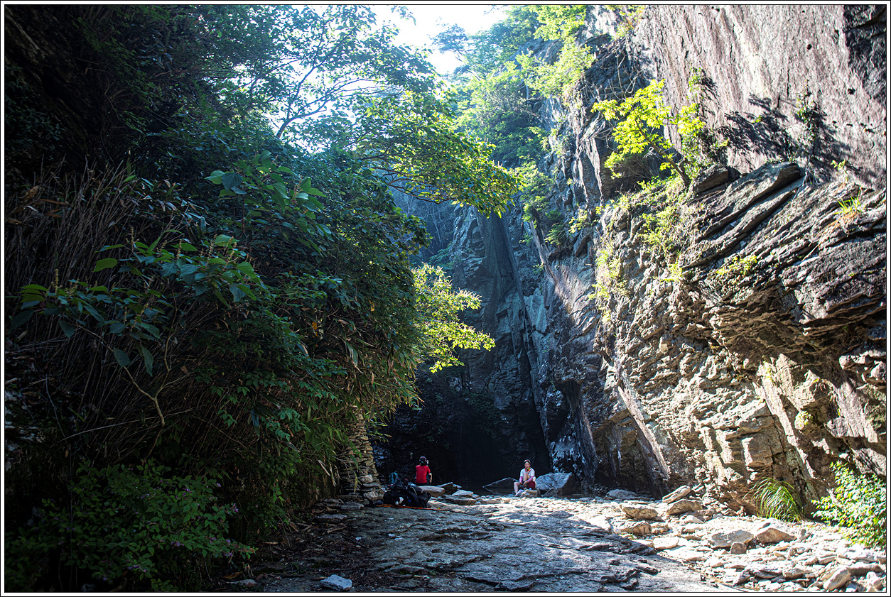▽ 용추폭포 하단은 암벽으로 이뤄진 협곡에 자리하여 운치가 있어 보이는데 물이 흐르지 않으니 낭패다.