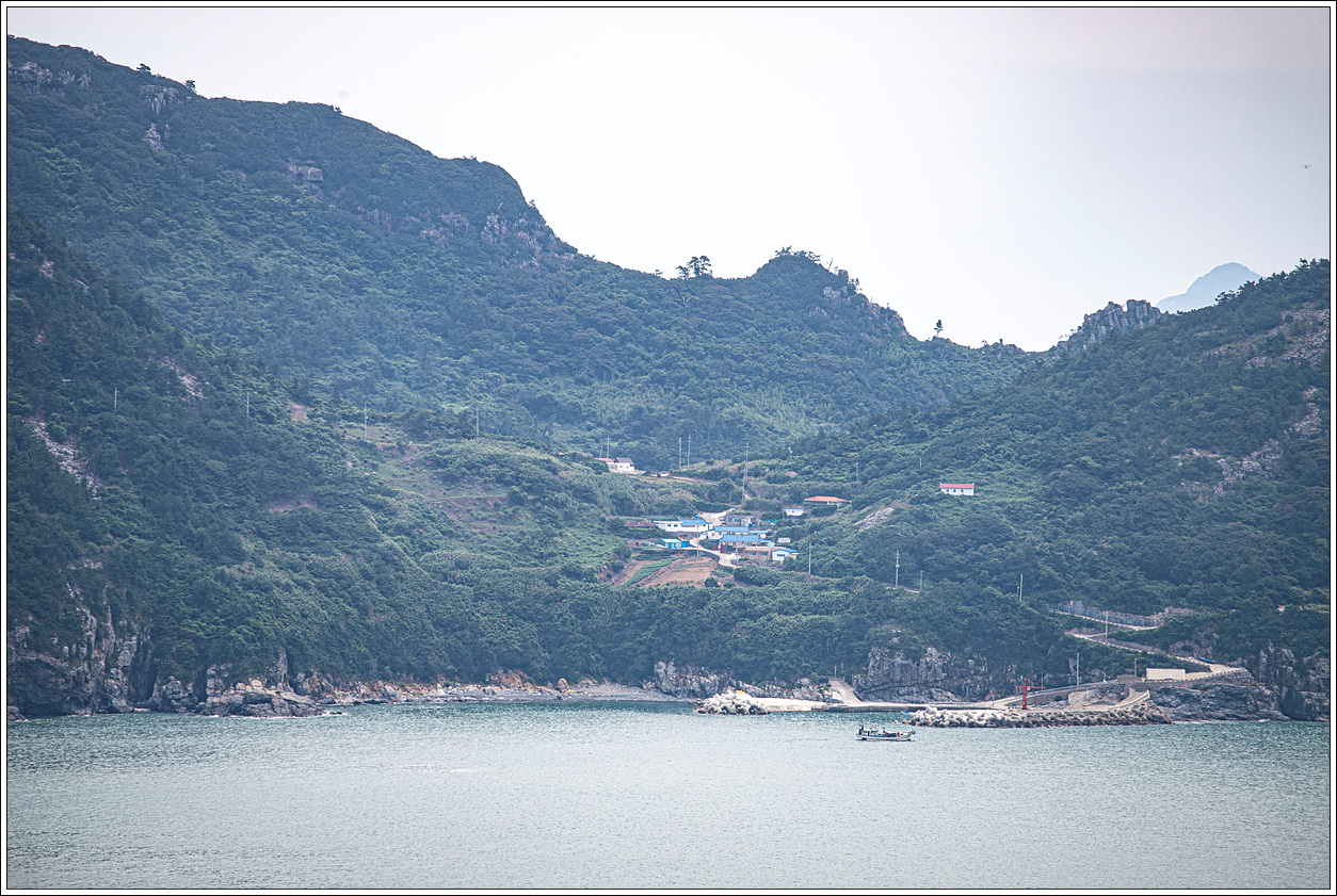 ▽ 망원렌즈로 당겨 본 소거문항 및 마을...이곳 마을도 손죽도와 같이 손죽리에 해당한다.