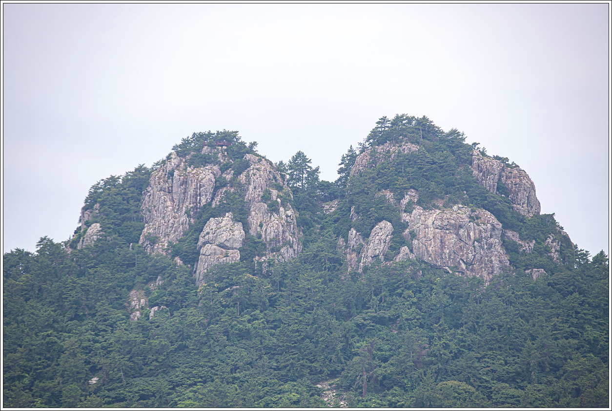 ▽ 당겨 본 삼각산 쌍봉... 왼쪽 봉우리에 전망대 테크가 보인다. 오른쪽 봉우리가 더 높다고 한다.