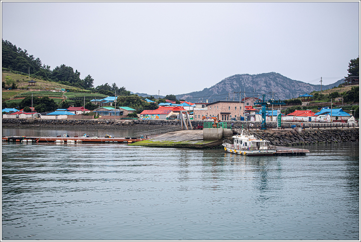 ▽ 연홍선착장 풍경...가운데 멀리 금당도의 금당산이 마치 연홍도의 산 행세를 하고 있다.