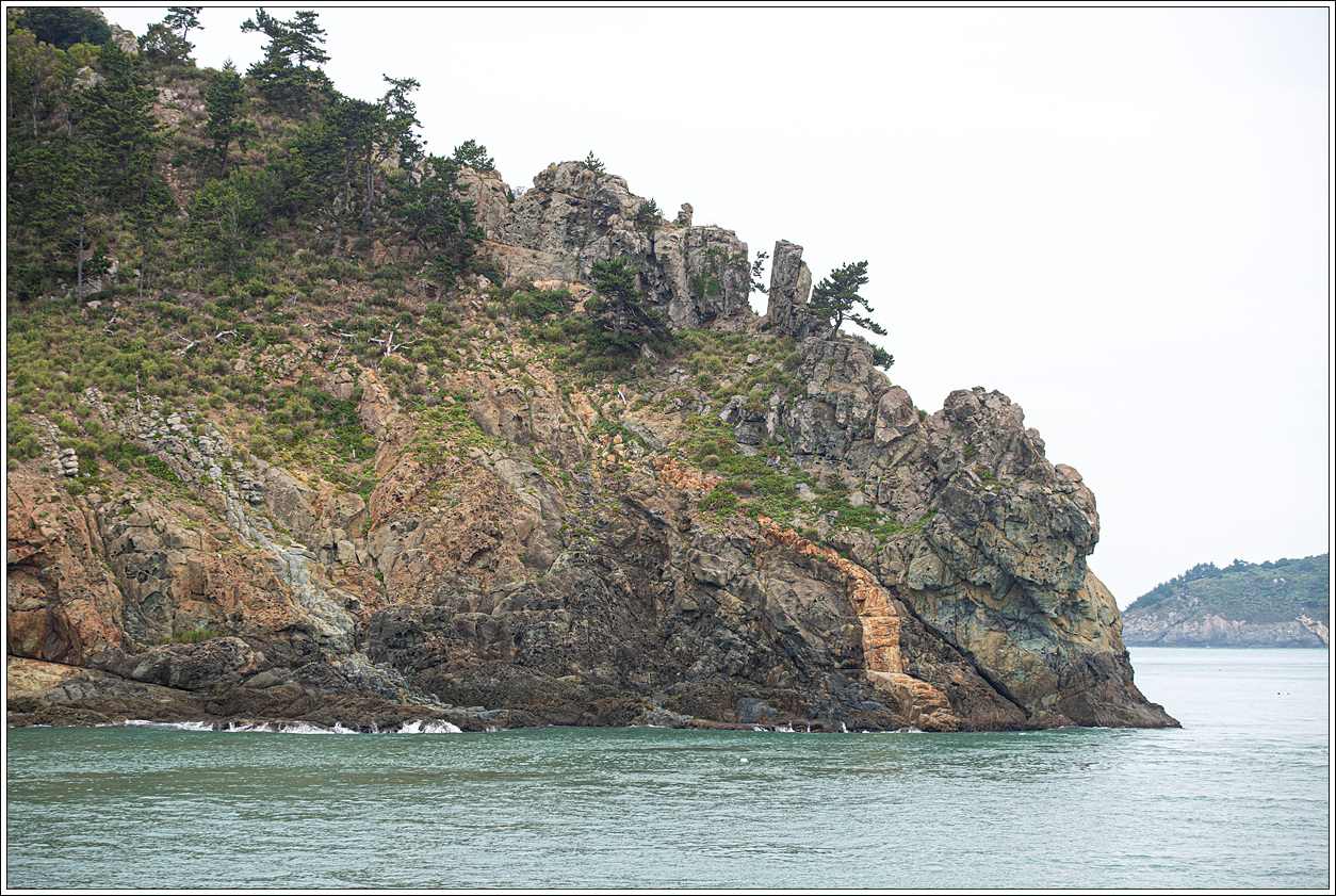 ▽ 초도에도 이러한 절경이 있나 싶을 정도로 북쪽끝에 자리하여 멋진 풍경을 선사한다. 어느 섬을 산행하거나 트레킹을 한다고 하면 반드시 그 섬만 가본다는 생각을 하면 재미가 반감된다. 흔히 귀찮아서, 피곤해서 그냥 배안에서 잠을 자게 되는데 이런 풍경들은 그냥 놓칠 수밖에 없으니 다소 피곤해도 주변 풍광과 지형을 익히며 관심을 갖고 있는 이들에게만 주어진 특권이다.