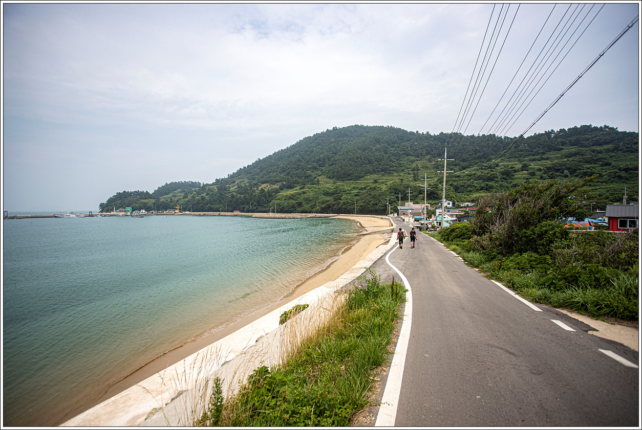 ▽ 마을로 접어 들었다. 마을 앞 해변의 초록빛 바닷물속으로 그저 풍덩 들어가고 싶은 충동이 이는데 어떤 산우님 한 분은 실제 들어가 수영을 했다는 후문이니 몸을 씻을 만한 곳을 찾기가 어려워 쉽지가 않은 얘기다.