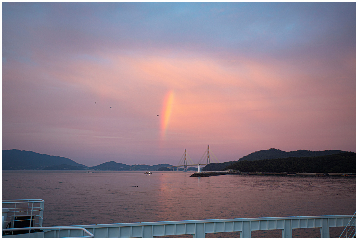 ▽ 녹동항에 도착한 시간은 04:30으로 05:00에 예약된 아침식사를 하고 동이 트면서 동쪽 하늘에 노을과 함께 무지개가 떴다. 녹동항은 분명 두번째 온 것 같은데 아무리 주변을 둘러봐도 2018년 1월 1일 팔영산 산행 후 횟거리와 함께 술 한잔 했던 녹동항이 아니다. 후에 알고 보니 이곳으로 부터 서쪽으로 1.2km떨어진 고흥수협위판장 및 수산물센터 등 먹거리 수산시장이 있고, 그곳은 어선들이 정박해 있는 어항으로의 녹동항임을 알게 됐다.